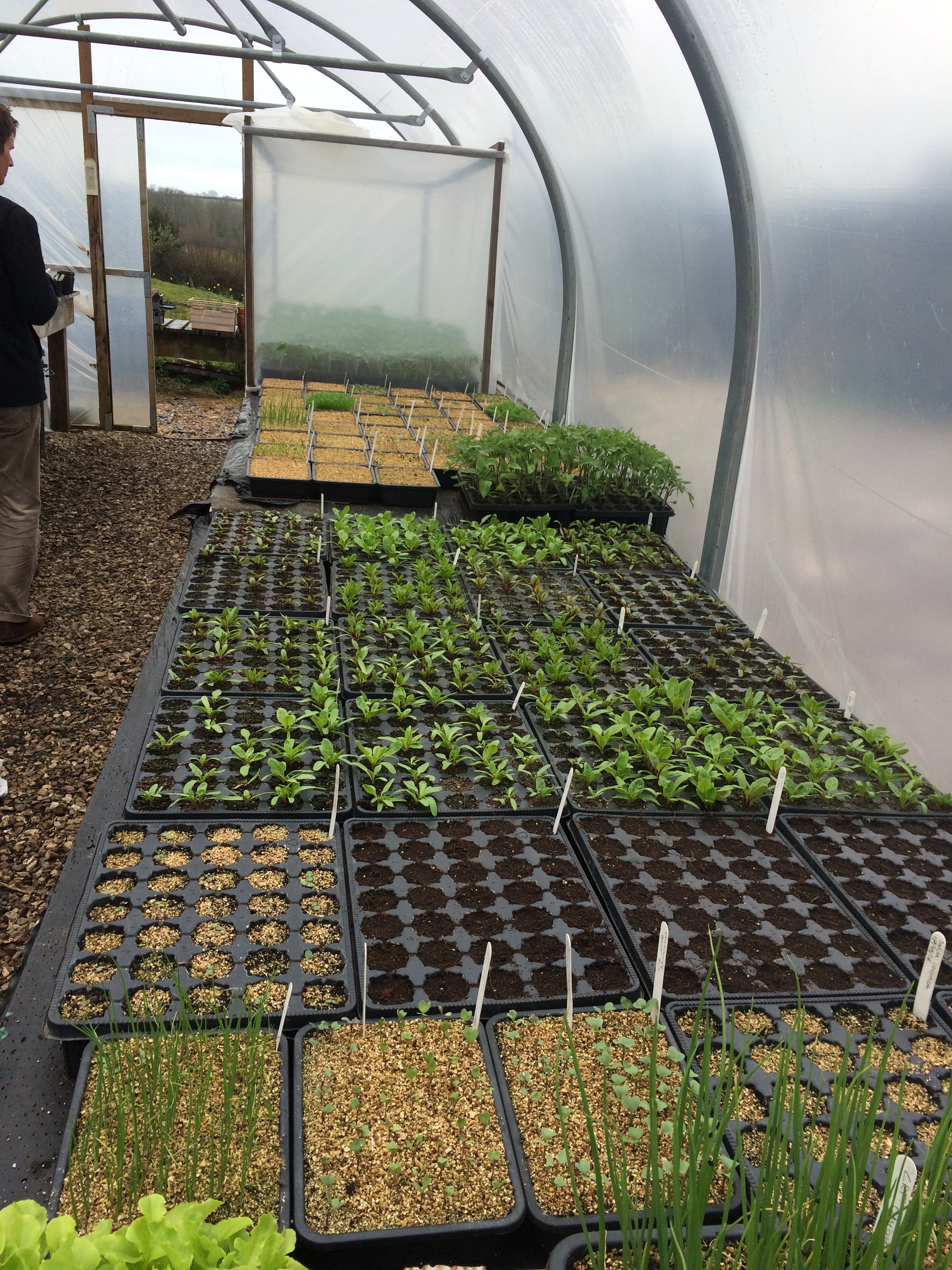 I caught the end of a talk about growing by Ashley of nearby Trill Farm. He’d brought a  huge selection of delicious leaves which they’d grown for their salad bags over the winter. They had not been able to grow over wintered lettuce due to the failure of their Grenoble Red seed: the quality of some seed sold is so disappointing. One wonders if some seed companies rely on people thinking it is their fault if seeds germinate poorly, rather than blaming the seed companies for selling old and poor quality seed. Grenoble Red is one of the plants we save for seed, to ensure good germination and healthy plants.