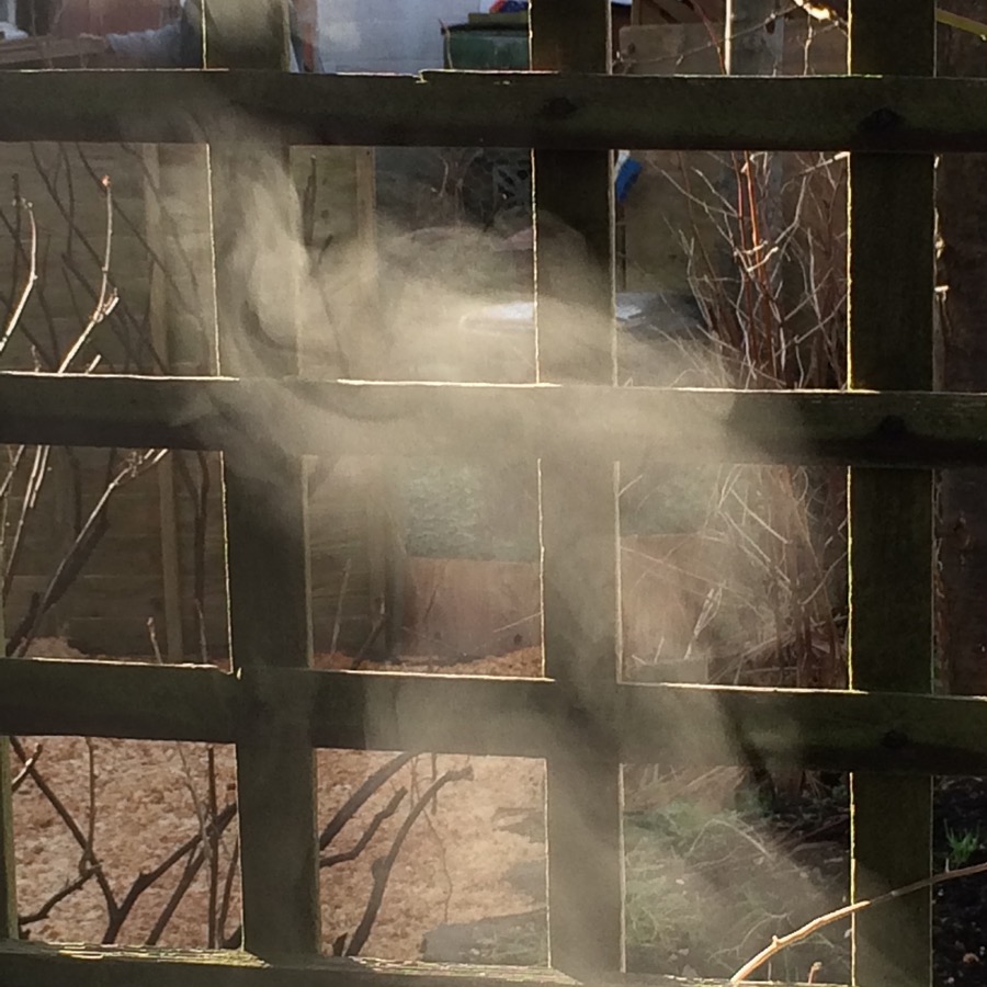 Despite the cold temperatures, the compost quickly reached temperatures over over 40C – steam on a cold day looks lovely.