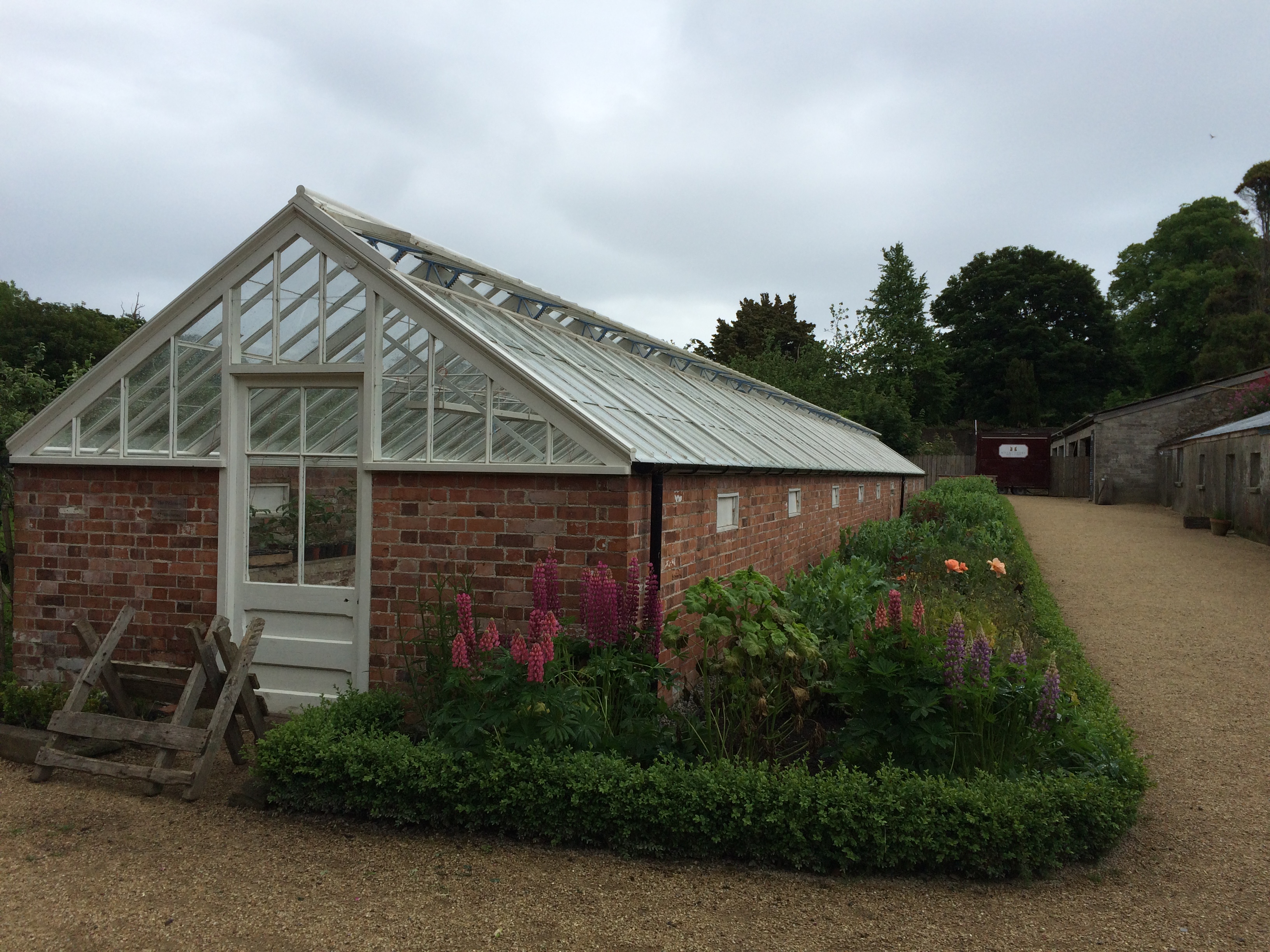 After the day course, I drove us to Kilruddery House near Dublin, a journey of about three hours, where Charles was giving a talk the next day. We had visited here last year, it’s a great place – the have extensive ornamental gardens, a large no dig kitchen garden and organic farms. Fionnuala and Anthony Ardee actively produce and promote good quality organic food. Charles and I enjoyed more amazing, fresh, home produced seasonal cooking. In addition to the walled kitchen gardens they keep livestock including chickens, pigs and sheep. A huge polytunnel is being constructed as part of the preparations for their Totally Terrific Tomato Festival in September, which will prove invaluable for extending the growing season for produce for their farmer’s market and the Kilruddery cafe.