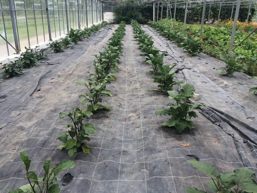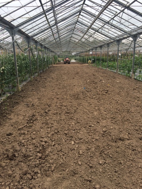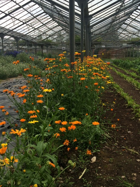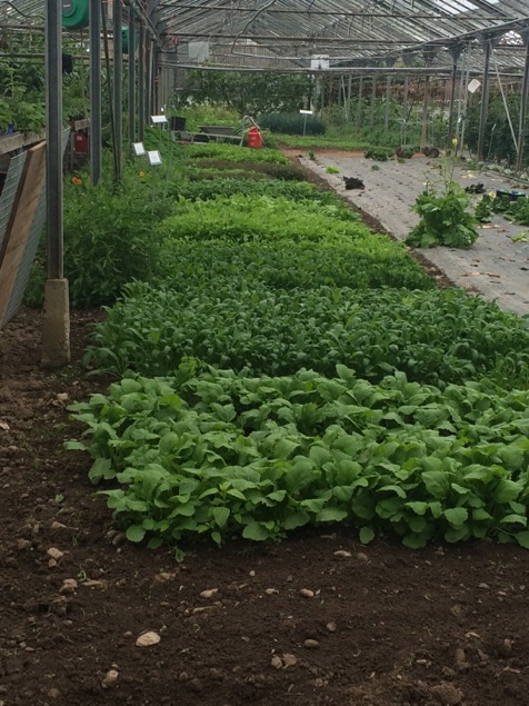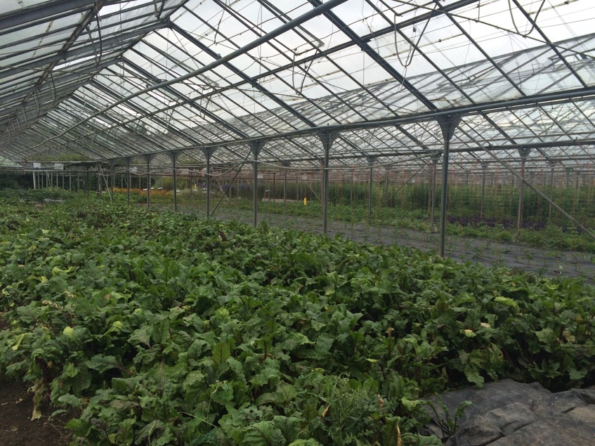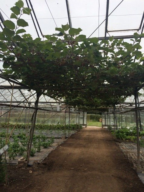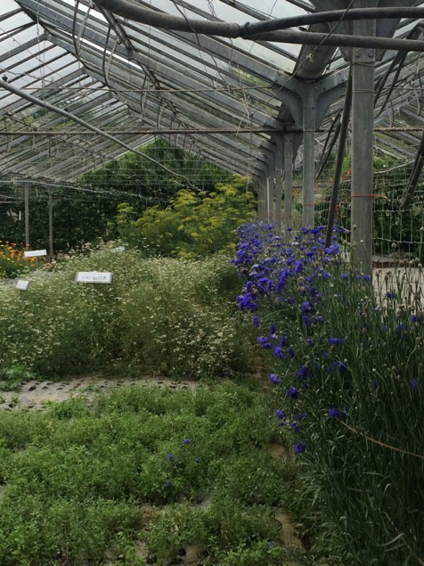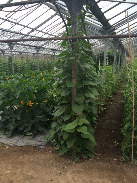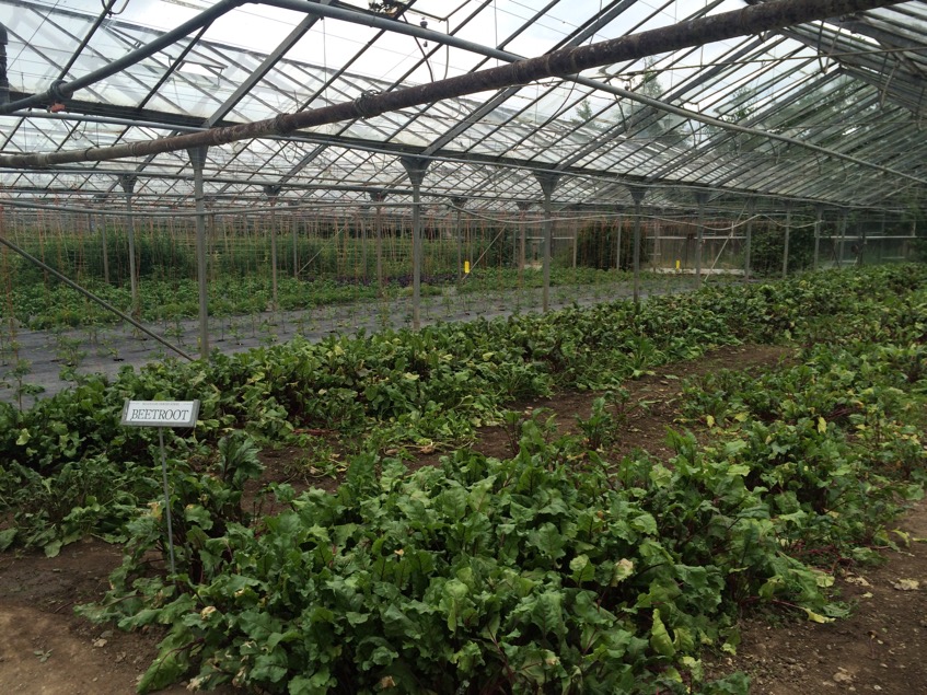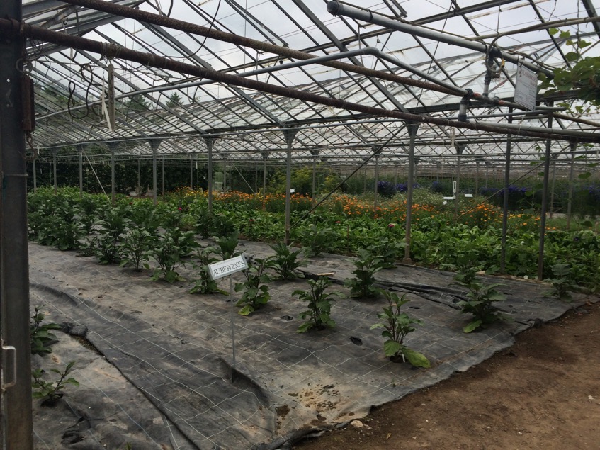 The glasshouse has a series of large beds, many of which are covered with weed suppressing membrane to save time – it may also have some moisture saving properties, like the compost mulch I use in my garden. They use a small tractor with a kind of rotavating attachment (I lack the necessary technical vocabulary for such equipment, having never used a rotovator or a tractor!) as part of the bed preparation, but are also exploring ways of introducing more no dig methods into the garden. The glasshouse was full of wildlife – bees, butterflies, foraging birds (some were feeding their young on the rafters!)