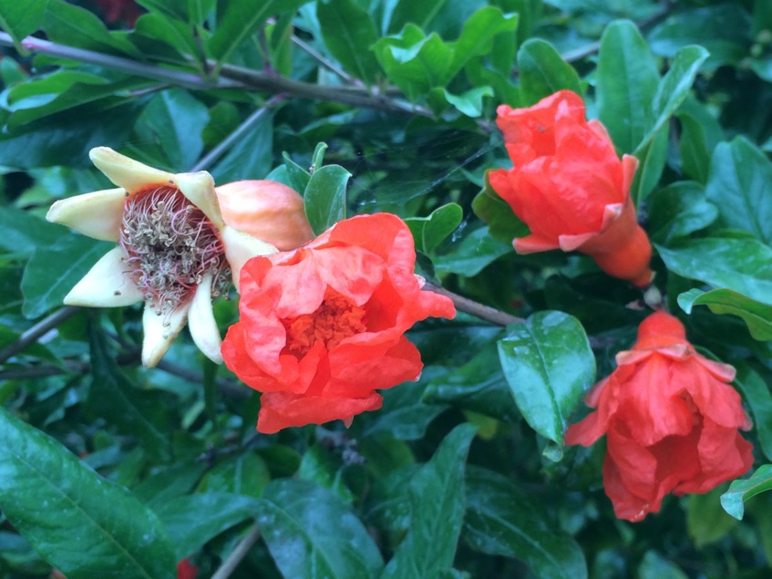 Around the edges are established fruit and nut trees including pomegranate, almond, fig, apricot, plum, nectarine and peaches. Extensive grape vines are full of swelling grapes (at the same time, my grape vine in the polytunnel  is just in flower.)