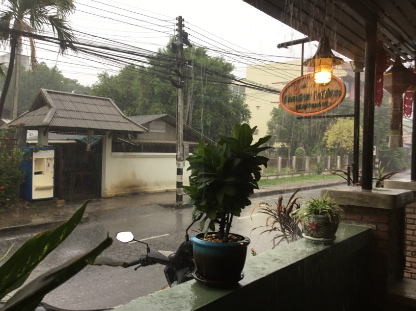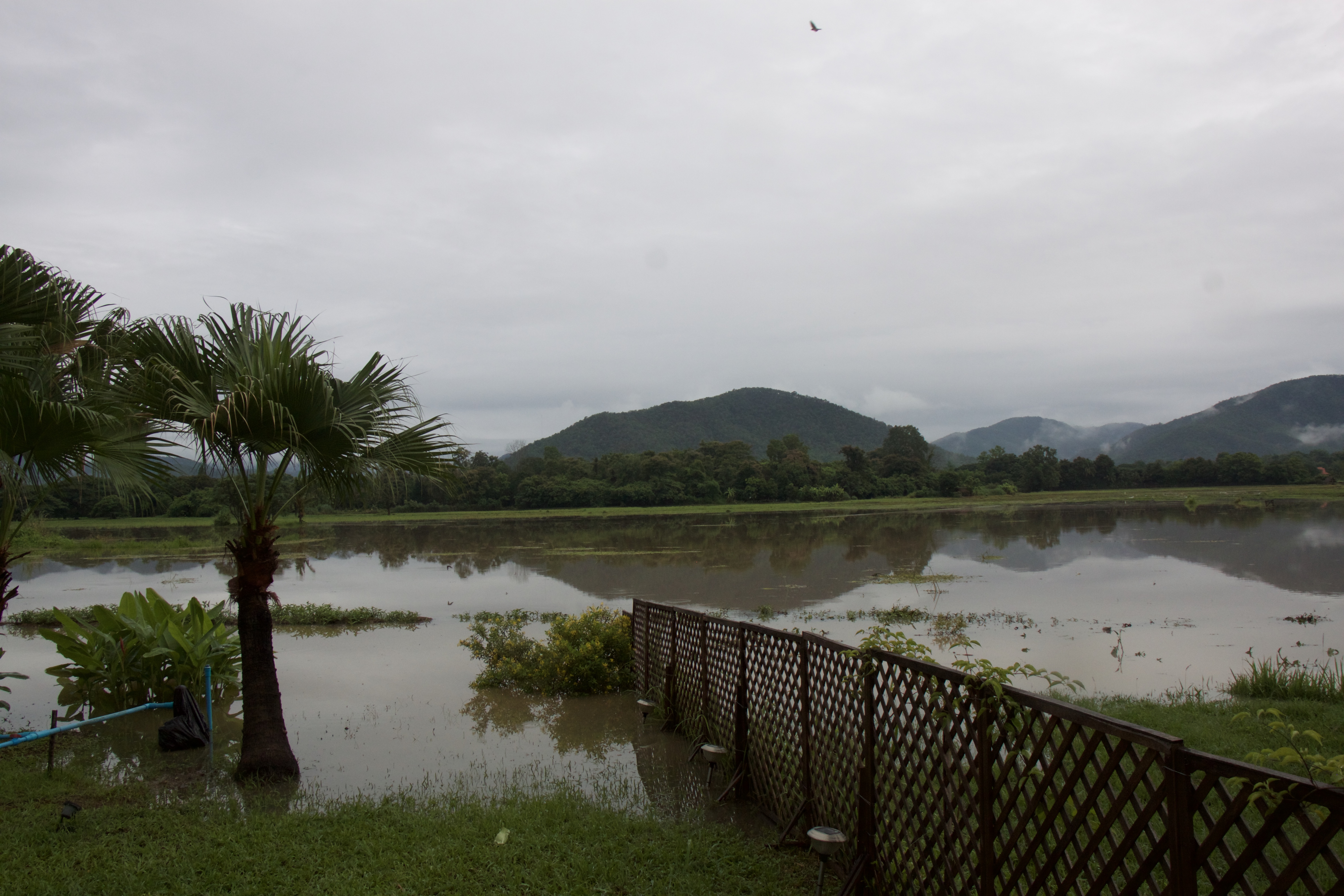 July is the start of the rainy season in Thailand. It was very hot and humid (especially for a person used to English summers) with incredible thunderstorms. One morning the khlong had overflowed, flooding part of the garden. It looked very dramatic, but soon drained away.