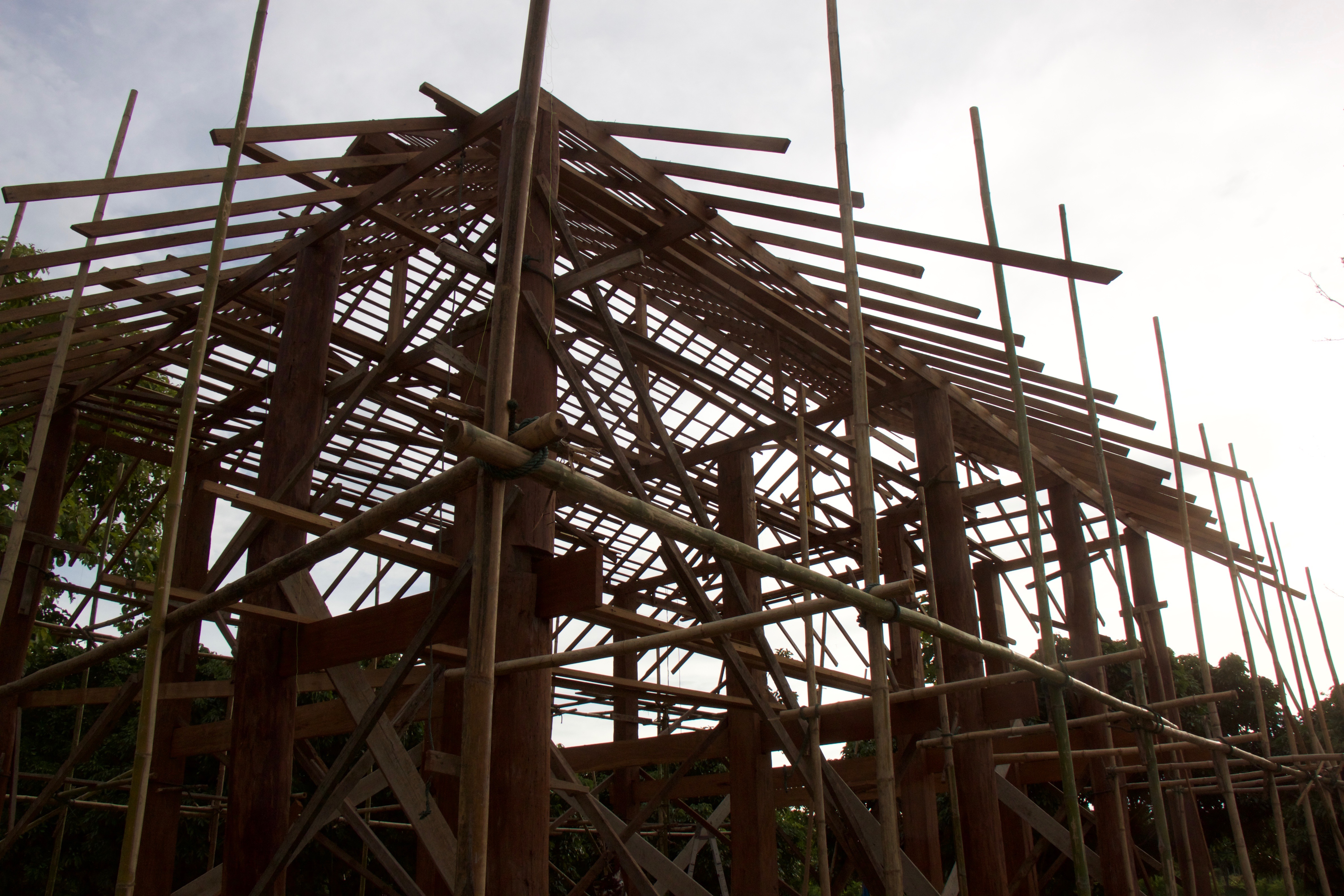 Here dad has created Of Rice and Zen, a boutique resort with two individual villas for rent – one has been there for a few years and a newer one  built using timber and tiles from an old rice barn. All of the scaffolding is made from bamboo.
