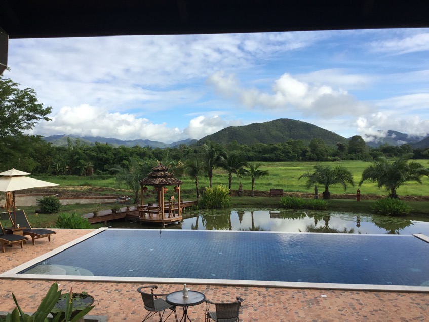 Dad lives in a village near to Doi Saket in Northern Thailand. It is very peaceful here, a lovely place to relax. We were especially excited about the swimming pool which was completed shortly before we arrived. It used a mineral filtration system, no smelly chemicals. It is a complete contrast with life at home. I’d brought some writing work with me – it was amazing working here on the veranda looking at these views and going for a swim whenever I felt too hot. I have visited Thailand in January and October, when it is hot but nothing like I experienced this time!