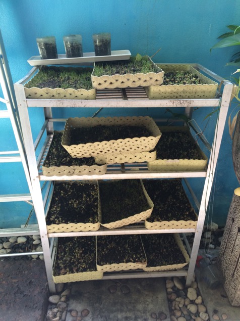 Here I bought some Thai organic potions to experiment with – an Egg Hormone for fruit (think I will try some on the aubergines) and Soybean Hormone. ‘Hormone’ is an unusual term for plant feeds, I wonder if it is one of those words that translated unusually from Thai to English.