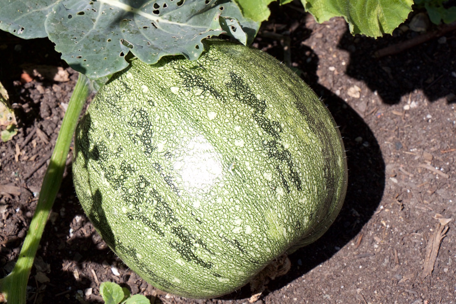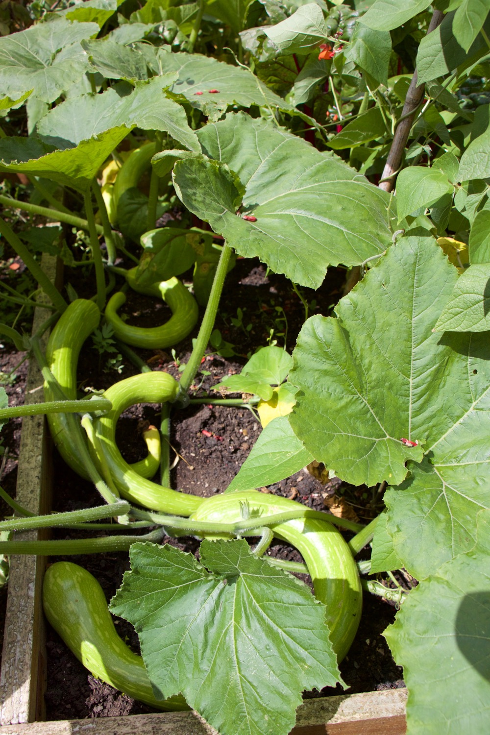 The squash above is a Pumpkin Nut, also from (guess where?!) Chiltern Seeds. This produces an edible squash with dark seeds that do not need peeling before eating. I grew two plants – one is in my garden and the other at Charles’, for comparison. We are looking forward to trying this squash in the autumn.