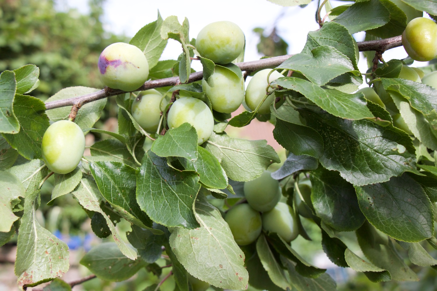 I have already harvested all of the currant and gooseberry bushes – including 6 1/2 kg of sweet, fat gooseberries picked and frozen in one afternoon. Now we are snacking on raspberries, Japanese wineberries and the first dark fruit on the thornless blackberry.