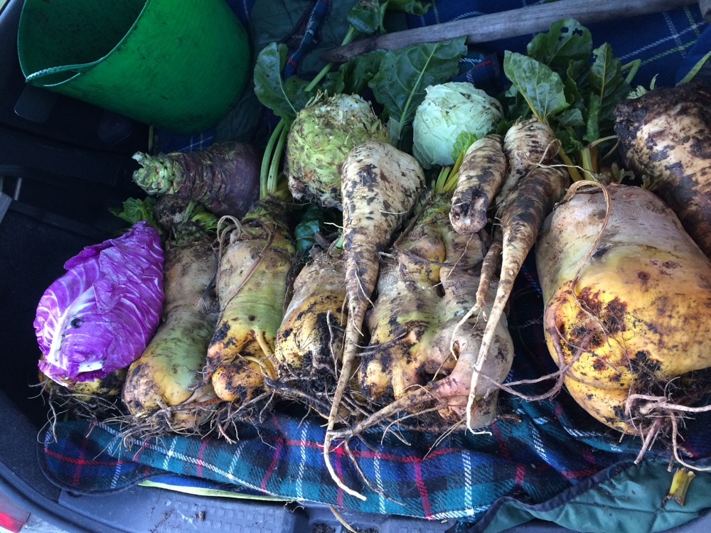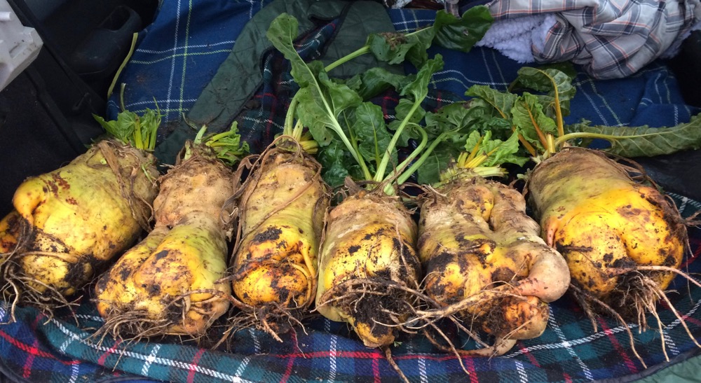 My beautiful mangelwurzels weigh around 4kg each (over 9lb), I needed the car to bring them home. They will keep well in a cool frost free place until I use them.