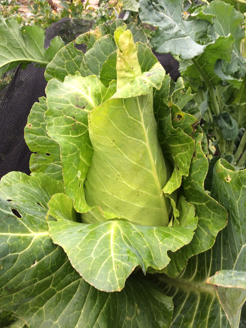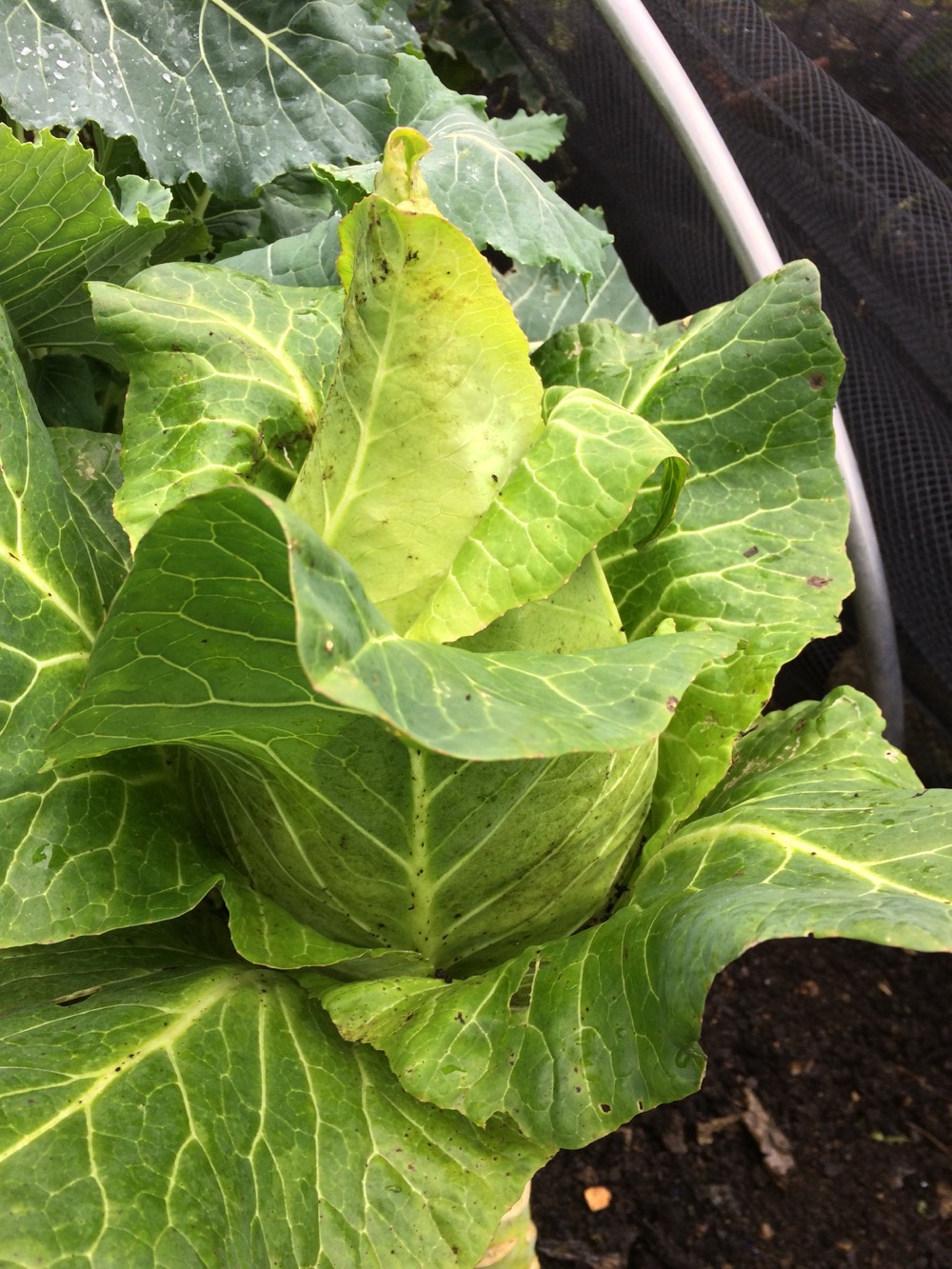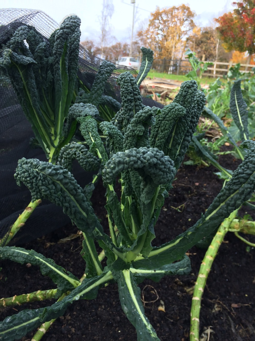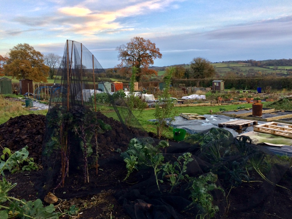 I was glad that on Sunday I had spent the afternoon at the allotment, harvesting some vegetables and tidying the brassicas. In the past we were taught to tidy the garden and put it to bed for the winter, which unfortunately stripped domestic gardens of overwintering habitat for wild creatures and insects as well as reducing the possibilities for year round food production. However my task was not to create some pristine artificial environment. Tidying the brassicas is beneficial for the plants. Fallen autumn leaves provide a natural cover for the soil, as we see in nature, so why don’t I leave them for the soil life to incorporate? In the wilder areas of my garden I do leave them, where they also provide winter accommodation for wildlife. Clearing away dead and decaying leaves which the plant no longer needs reduces habitat for pests (slugs, snails, woodlice) and increases ventillation, decreasing the likelihood of disease, rotting or other problems. Using well rotted compost as a surface mulch protects the soil, feels the soil flora and fauna and provides nutrition for a year’s harvest of vegetable – some of the beds yield three different harvests in a year. These beds are not left exposed or uncovered thanks to the surface mulch.