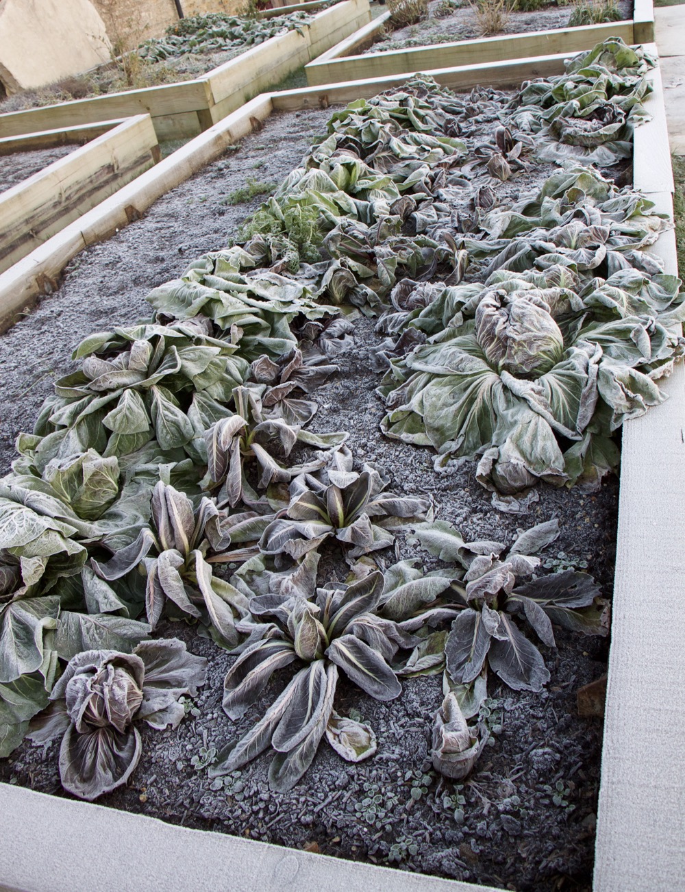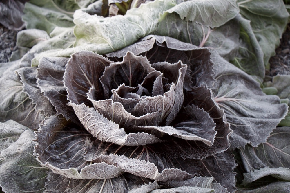 Radicchios always look amazing in the frost. They recover well from being frozen because they were a later planting and have not hearted up fully.