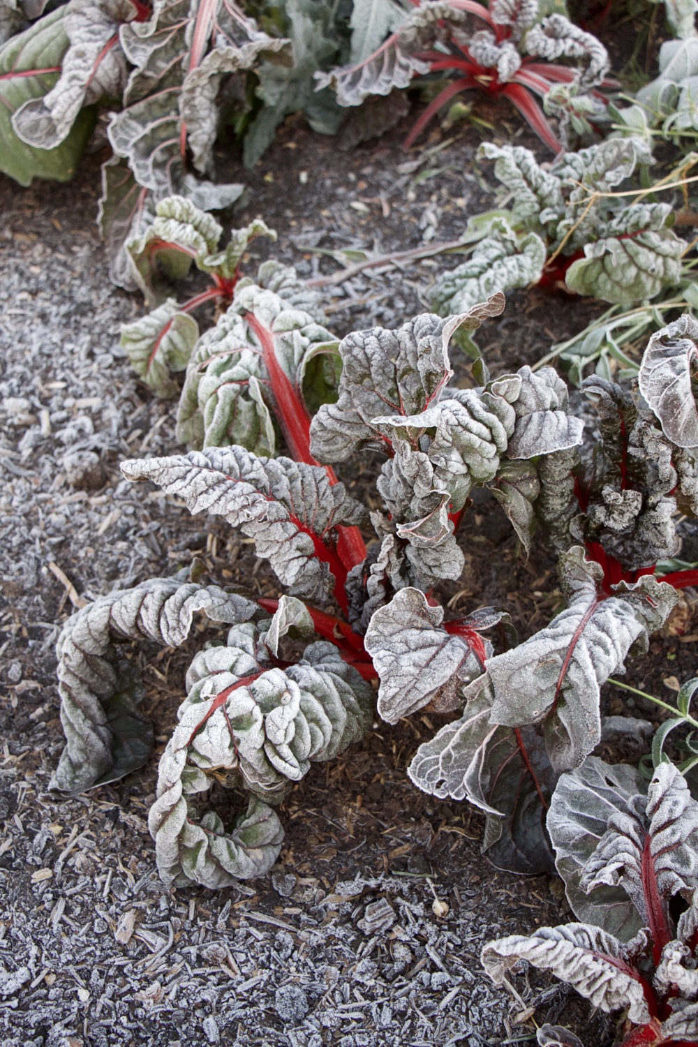 The chard looks flattened by the cold, but a few days later was strong and vibrant again. These chard will remain in the ground until they bolt in the spring.