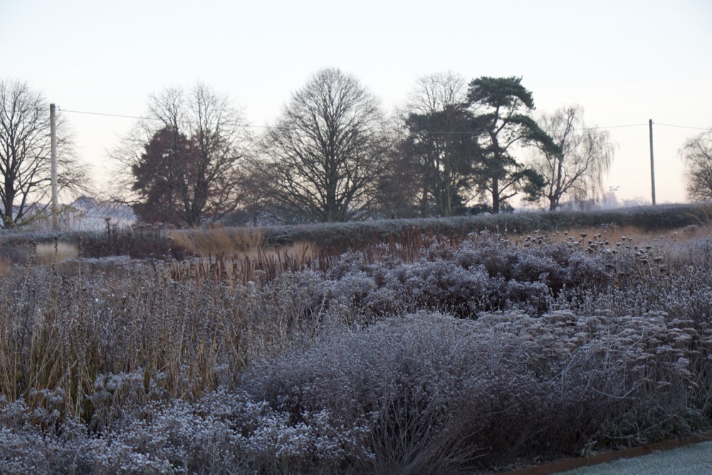 The Piet Oudolf garden was not yet open to visitors, so I took these photos leaning over the gate. It was shortly after 8 am.