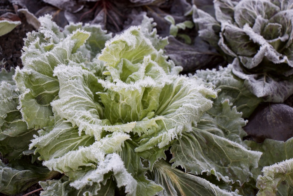 We have had some hard frosts here in Bruton, with temperatures falling well below zero (that’s cold for for Somerset, I appreciate that elsewhere it would be considered rather mild weather!) Although not frost free, the polytunnel offers a lot of protection from the winter weather, in particular icy winds and rain, enabling me to grow a far wider range of food year round.