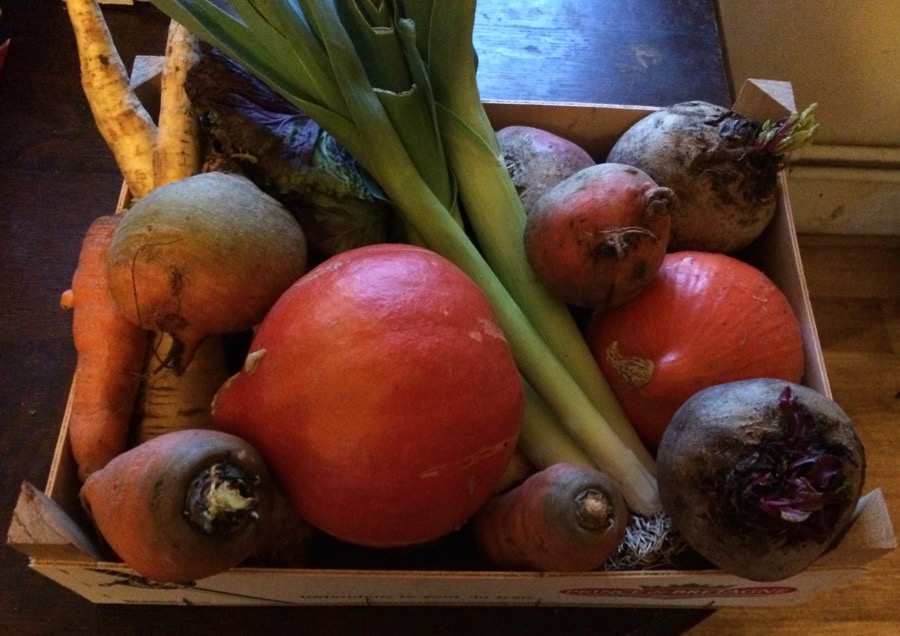 In addition to freshly harvested vegetables, herbs, etc I use home stored ingredients including squashes, onions, garlic, chillies, beetroot, dehydrated tomatoes, some home dried herbs and spices and dried beans, especially Czar (a white runner bean) and Borlotti. From the larder, I use olive and sunflower oil, vinegars, spices we can’t grow (ginger, cinnamon), oranges and lemons. We have some homemade cider vinegar and our own homemade infused oils and vinegars too.