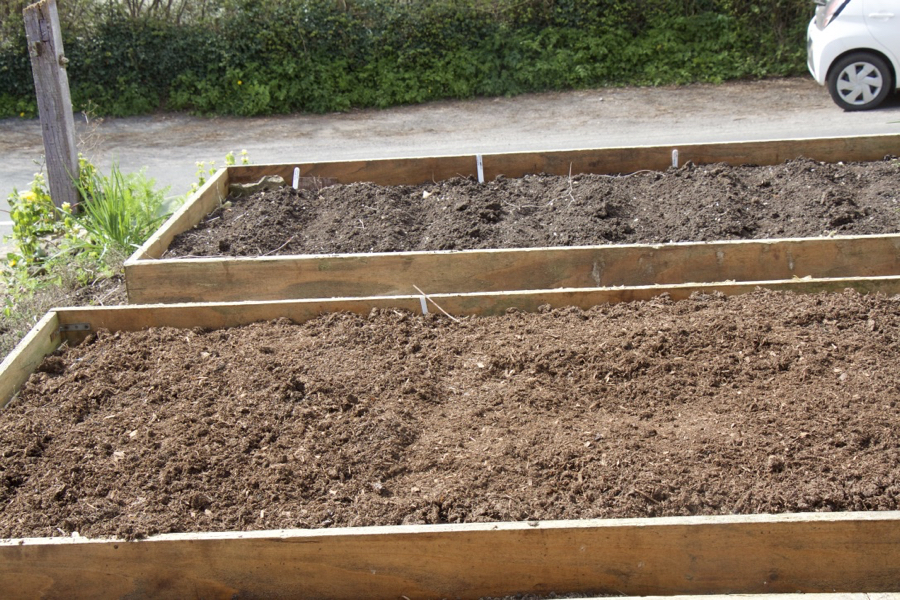 Very early first early potatoes (Rocket and Swift) are full of life in the polytunnel. This year, I decided to grow the rest of the potatoes at home rather than the allotment, so I can easily fleece them if the cold temperatures continue for longer than expected. First earlies are in a bed in the back garden and second earlies in the front garden raised bed closest to the road. I’ll be mulching them with well rotted manure tomorrow when Charles comes to help me bring some home from the allotment. A few remaining spare potatoes will go in pots on the patio.