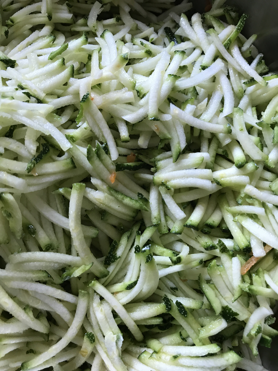 - 1 cup grated courgette (alternatively, spiralise them to make ‘noodles’)