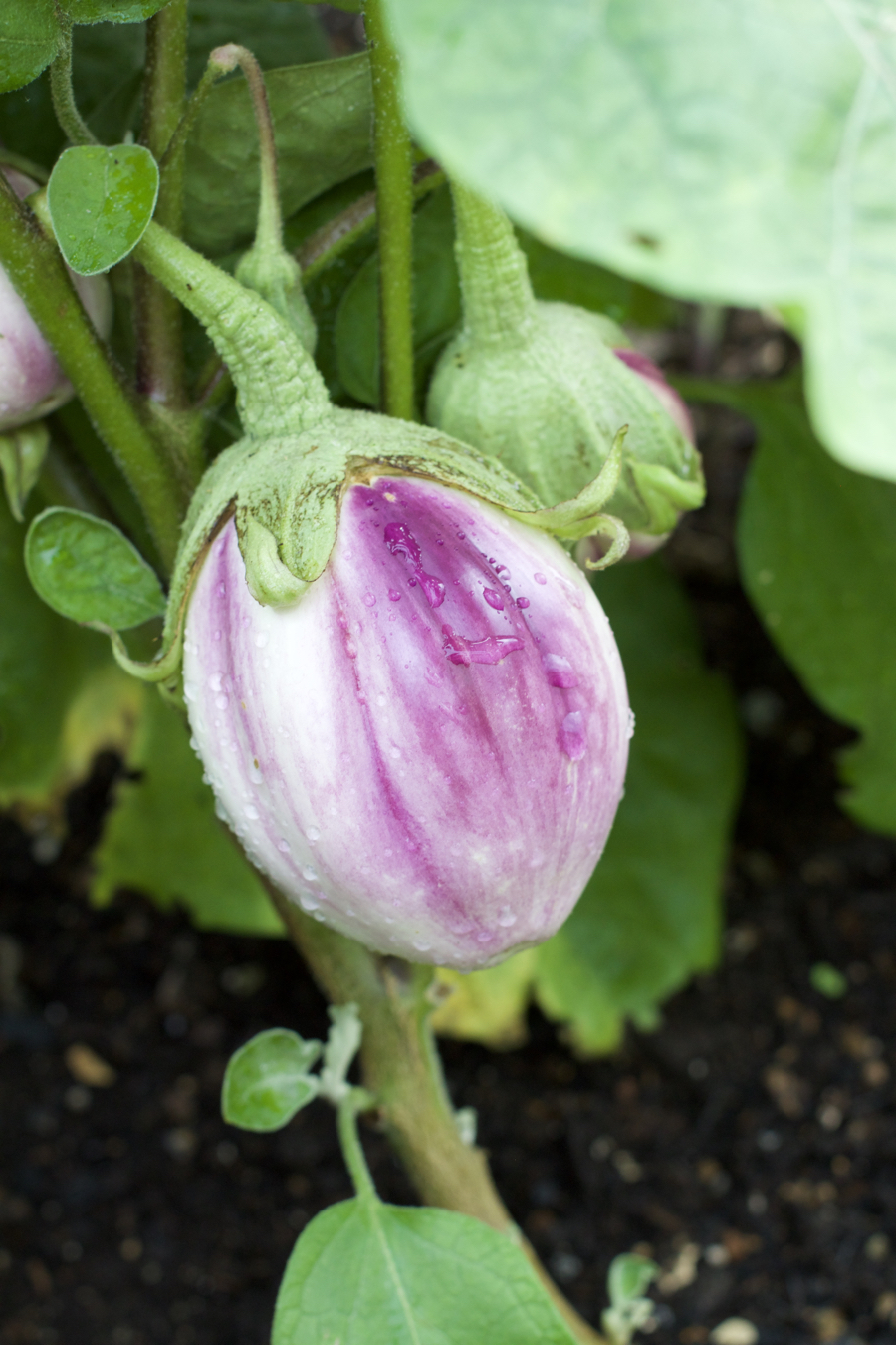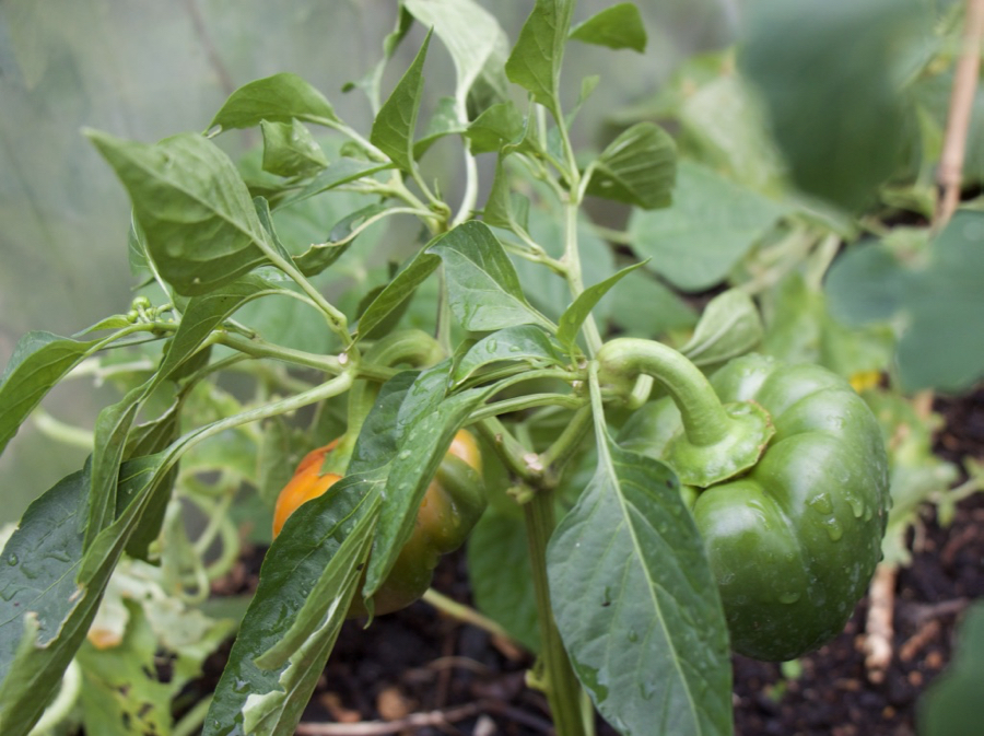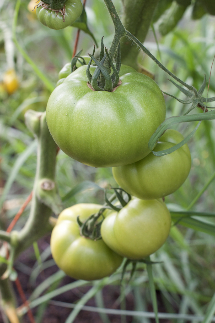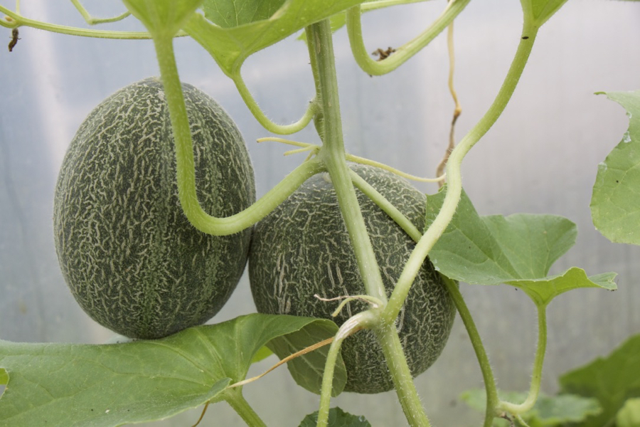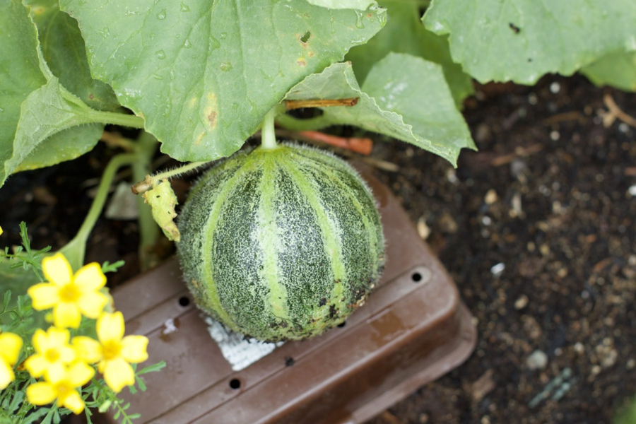 The melons were all planted in the side beds this year, growing up and along strings.