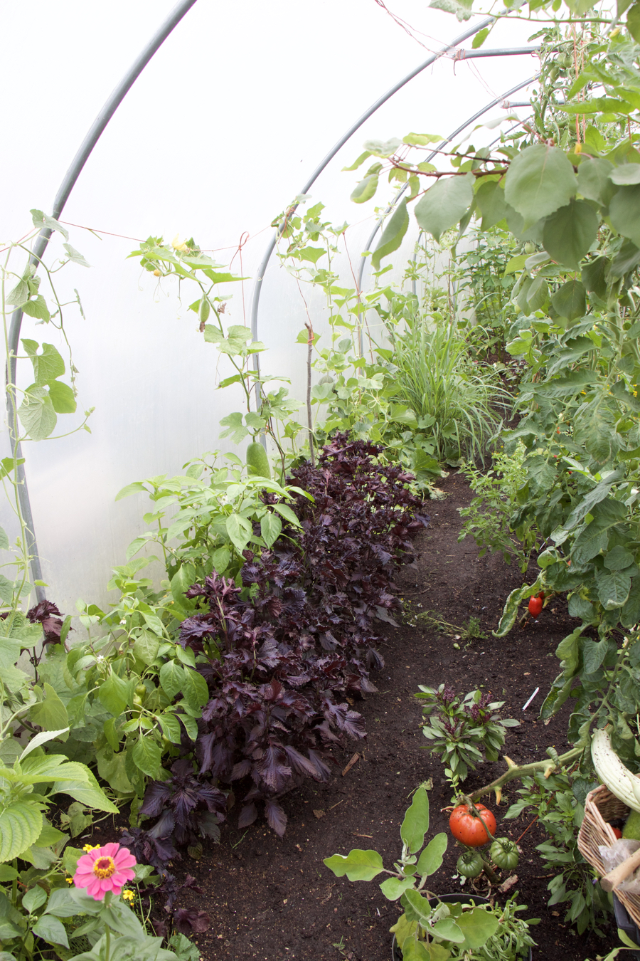 The polytunnel creates a microclimate within my garden, extending the season and harvests considerably. Relaxed summer picking, baskets of ripe tomatoes, cucumbers, basil, aubergines, Â harvested and eaten daily for meals (my sons can eat their own body weight in cherry tomatoes and cucumbers every day!) is now transformed with a sense of urgency. The nip of chilly air reminds me that the summer crops will soon be ending and it is time to preserve everything that I can.
