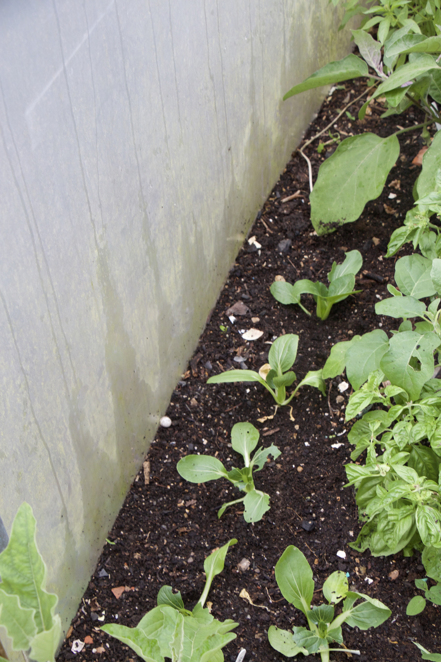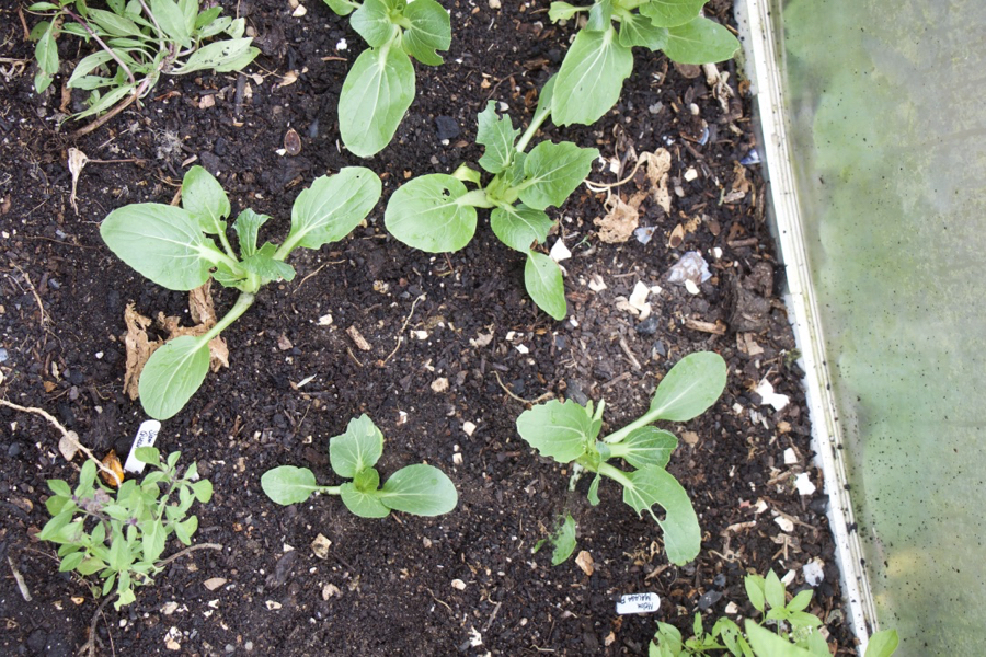 Making holes with the dibber in the moist compost, I planted the pak choi and fennel in gaps. Pak choi is a fantastic slug attracter, you can see where some have had a nibble of the leaves. The pak choi will be ready to harvest quickly, the fennel takes a lot longer but is an autumn crop. Soon I’ll be sowing fennel which will over winter for an early spring crop.