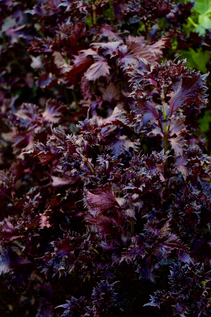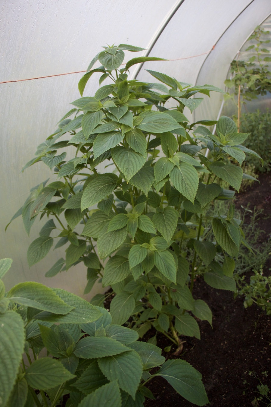 There’s also green and red Perilla/Shiso. I had no idea that green Shiso grows so tall in a polytunnel, it is about 5 feet now! The shiso plants at my allotment are much smaller than this. Green shiso is much used in Japanese recipes.