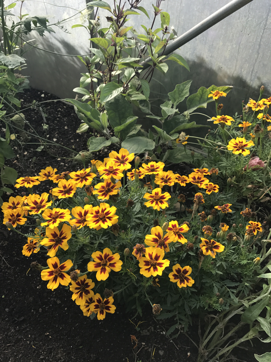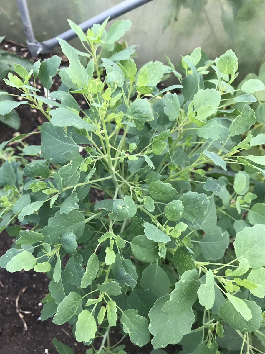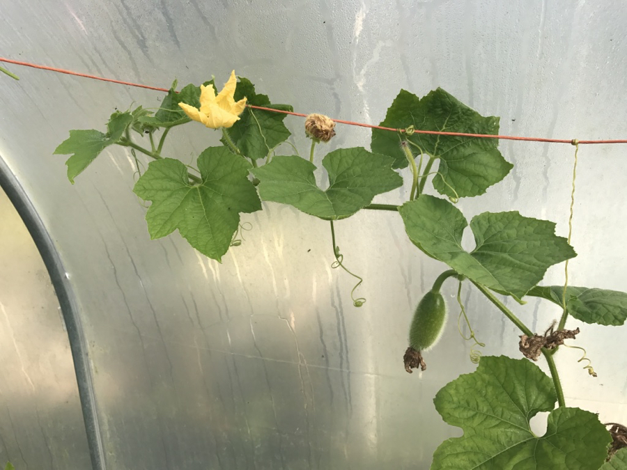 Clearing some melon plants which had mysteriously died and basil which was past its best created useful space to pop in module grown Florence fennel and Pak Choi. Growing in modules helps to make optimum use of space – the young transplants are growing as the older plants finish, and are ready to put in as needed. Polytunnels are a precious resource and this helps to make the most of their protective microclimate.