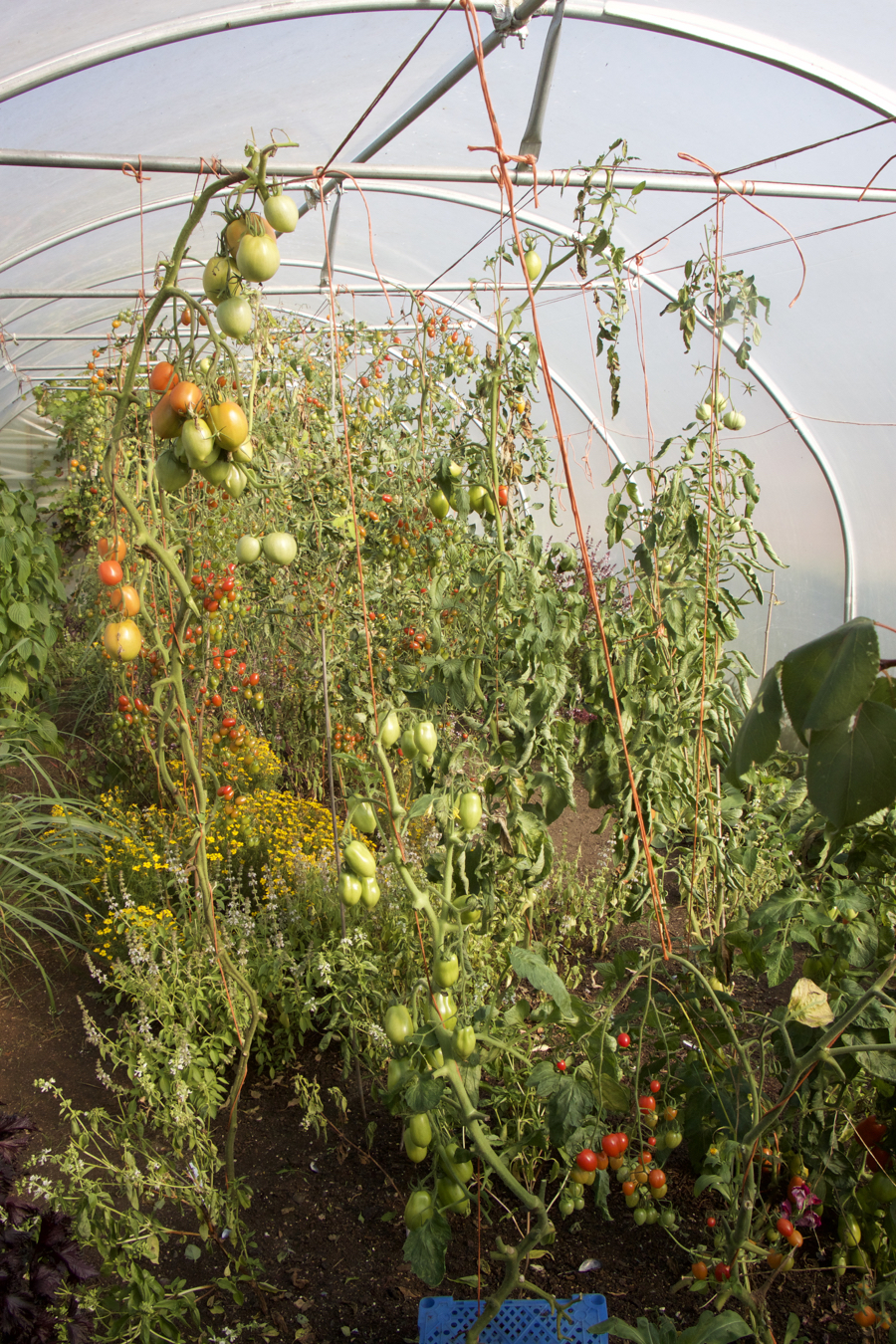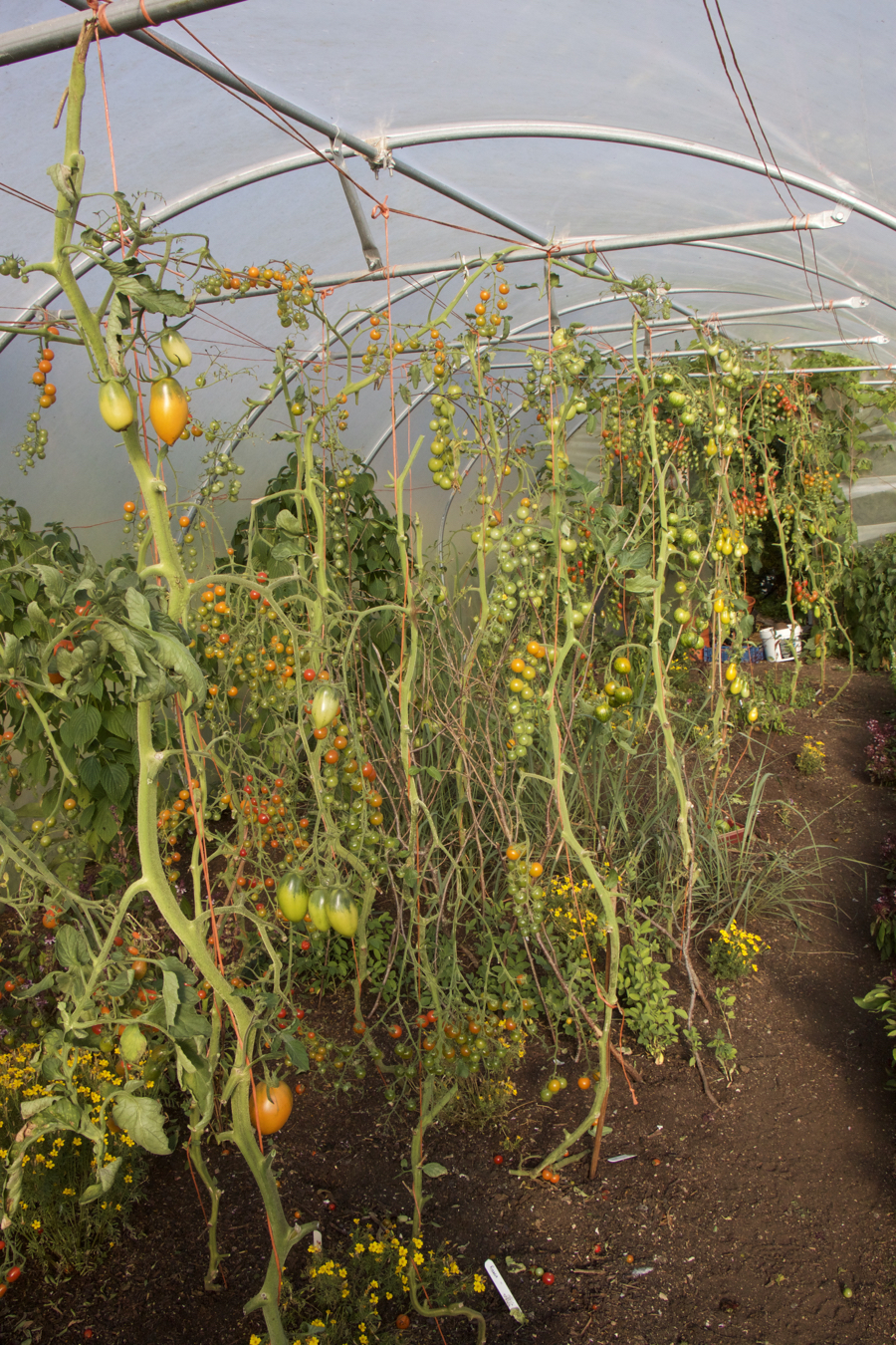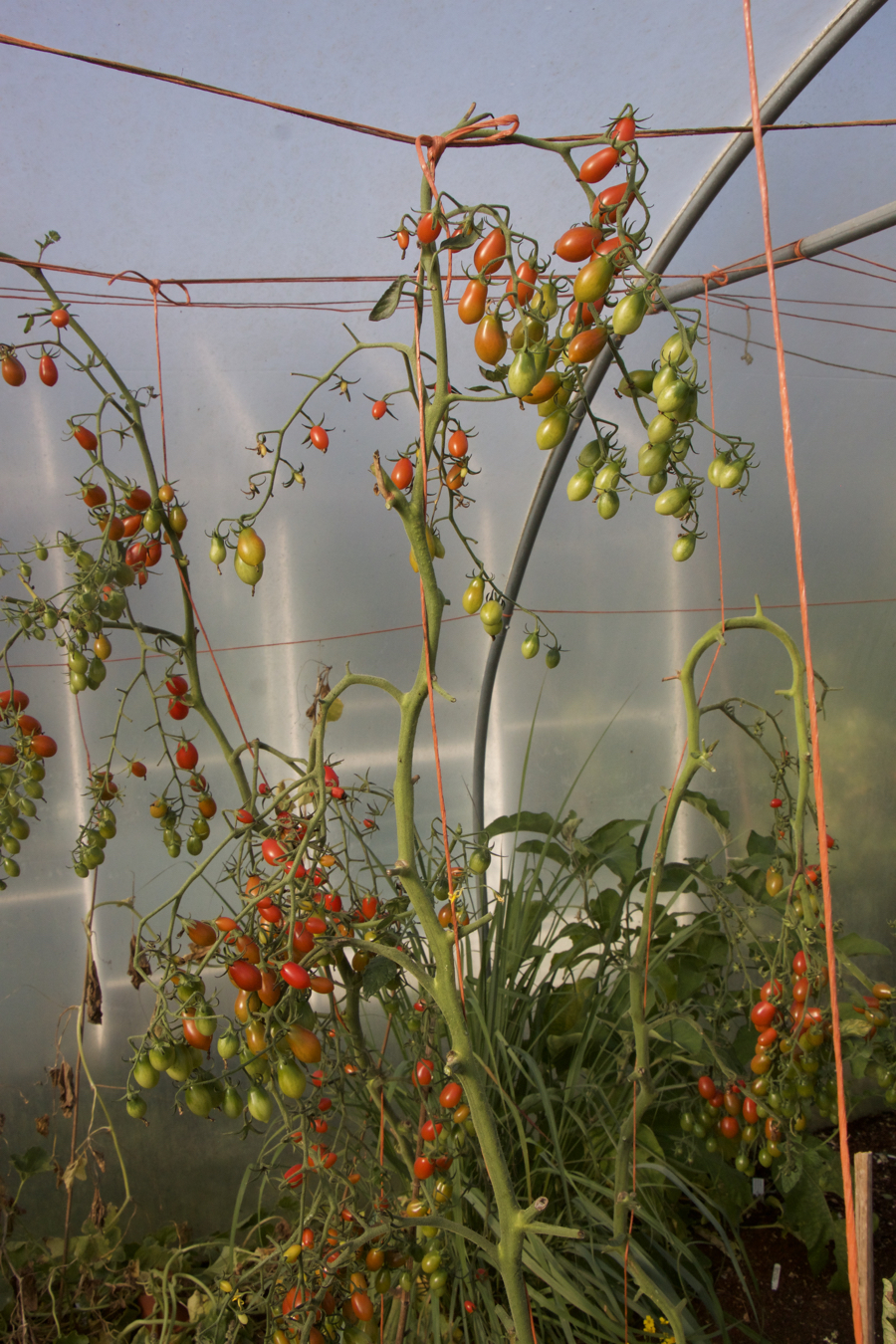 Outdoor tomatoes were affected by blight a few weeks ago; it has now got into the polytunnel. Although I keep the leaves dry and the tunnel well ventilated, I think side shoots touching the polytunnel roof, where condensation gathers, helped create the right moisture and warmth conditions for it.