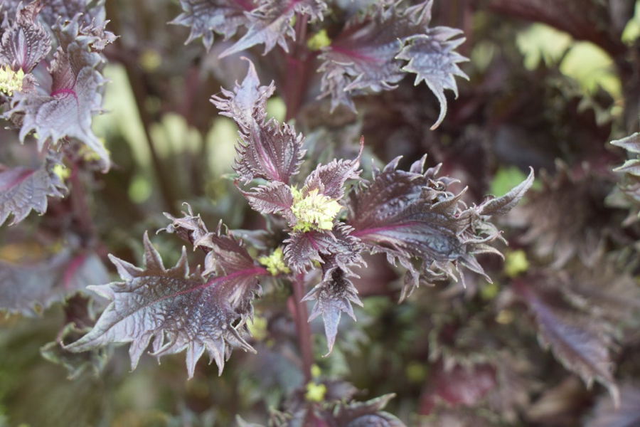 Both the green and red perilla/shiso is producing flowers – having never seen them before, I am curious so have left the plants in the ground for an extra week. I’m thinking of leaving one shiso plant to see what happens, but the rest will come out soon. In a few weeks I’ll dig out the clump of lemongrass photographed below and transfer to a pot to over winter indoors, the rest is going to remain in the polytunnel.