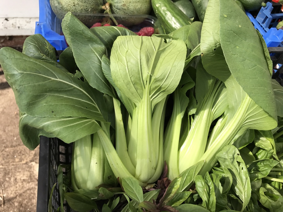 Pak choi, planted a few weeks ago as a catch crop, is bolting due to the warm temperatures in the polytunnel. It’s still good to eat; I harvest it whole for stir fries and roasting. Pak choi is excellent for attracting pests – I’m sure slugs can smell it from miles away! Check for slugs before cooking, I found 3 – don’t tell my sons!
