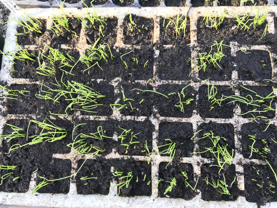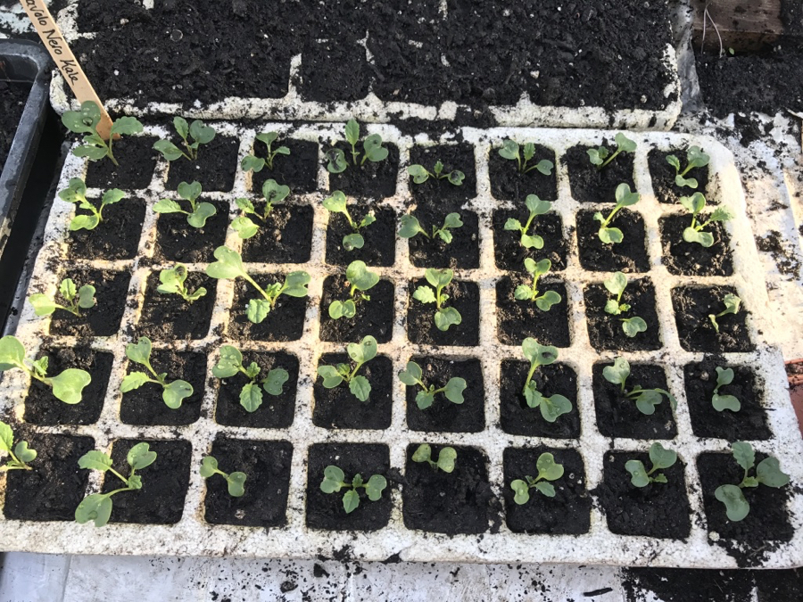 The spinach, which did not go according to plan, has lots of gaps. This might be due to some slugs which I found under the module trays, as there is no reason why half the tray should have failed to germinated, it was all the same seed in the same compost. So I have sown fresh spinach ‘Medania’ into modules today and am hoping for the best!