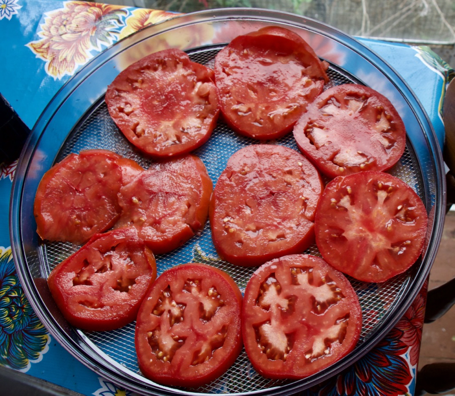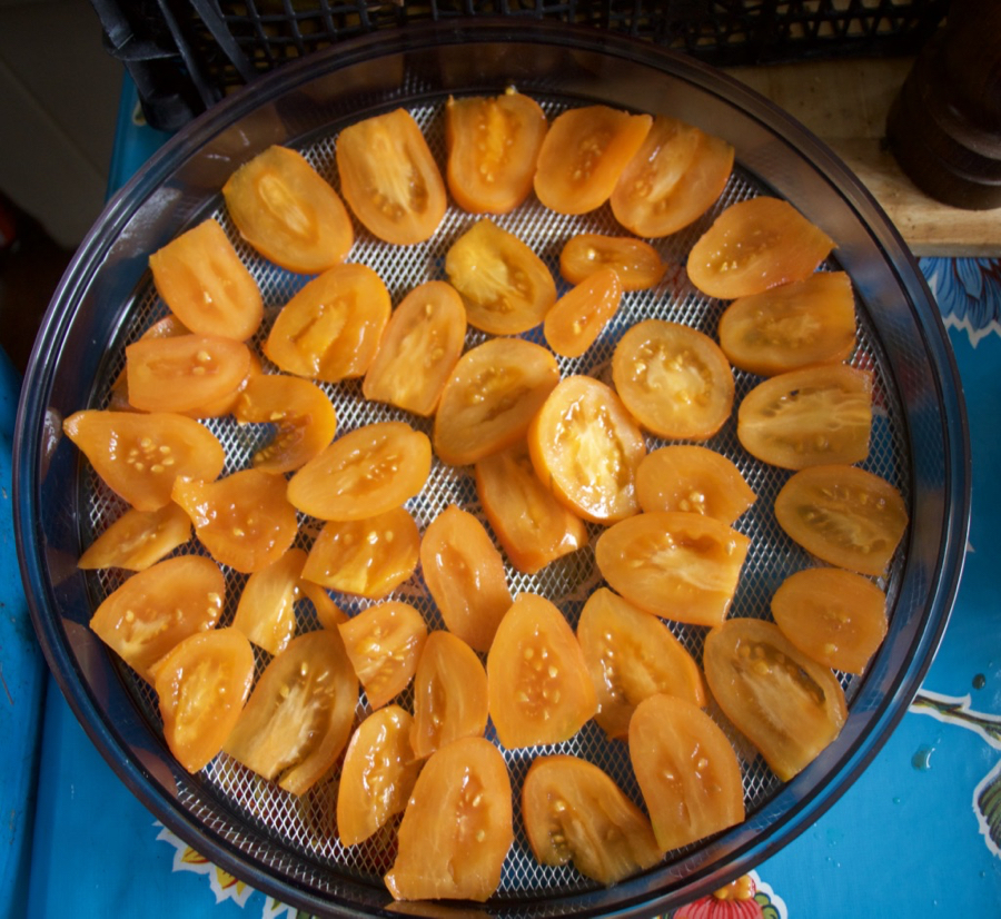 With dehydrators it depends on your needs. I have a Stockli which I like because it has a small footprint, not much bigger than a dinner plate, and 10 removeable tiers – one can use just any number of tiers, so if just drying a few trays of herbs then 3, all the way up to 10. Charles has a 9 tier Excalibur – he has more room! It very much depends what your needs and budget are – both of these are quite expensive. I have friends who have had great success with cheaper models. Lakeland do a smaller one which several people I know have great success with.