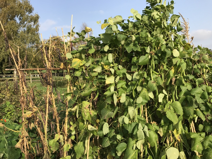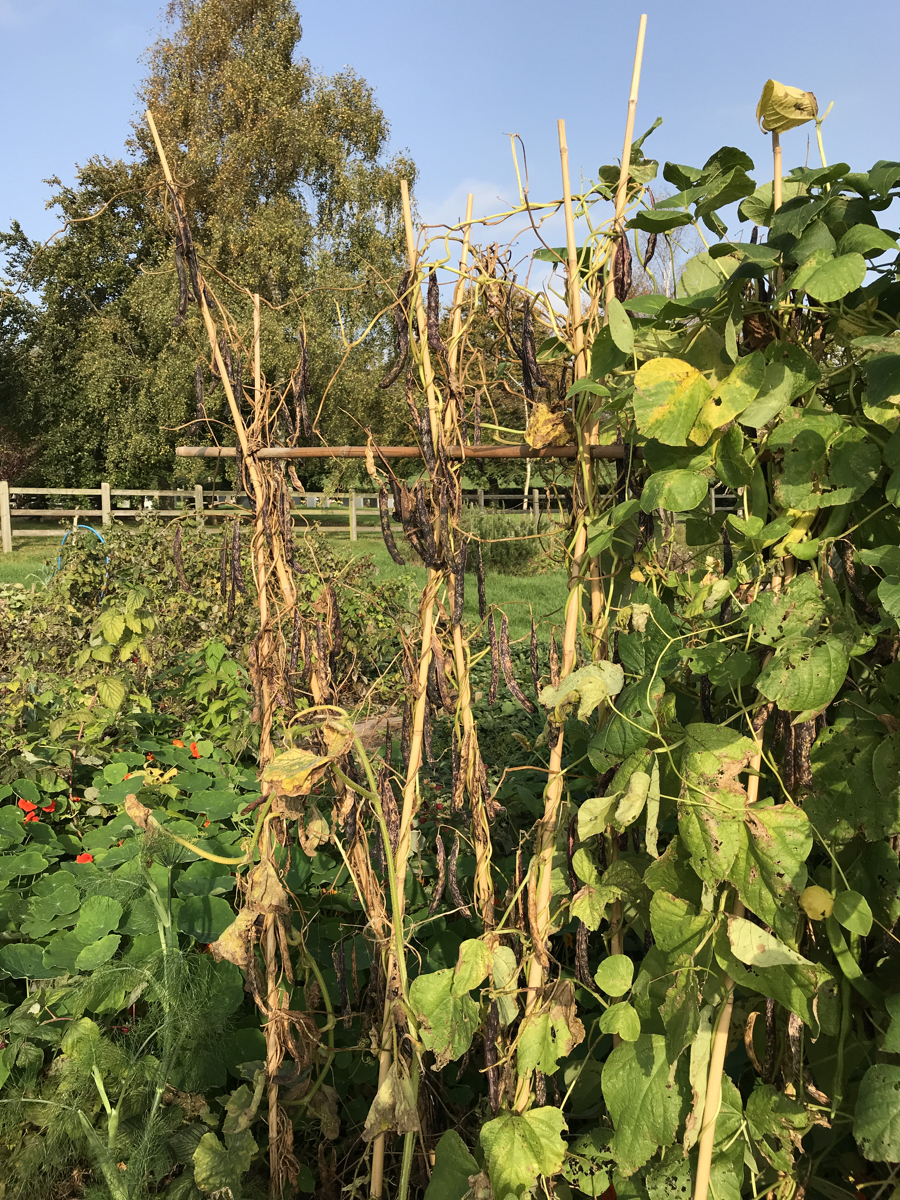 Time again was a main consideration here. I decided not to harvest the drying beans as there simply wasn’t enough time yesterday. The choice was either harvesting beans or spending some time with my son – the beans are less important than family. Hopefully they will be ok and I can harvest and dry them when I am home.  The allotment is still very full, I’m not sure where I am going to put the garlic and broadbeans!