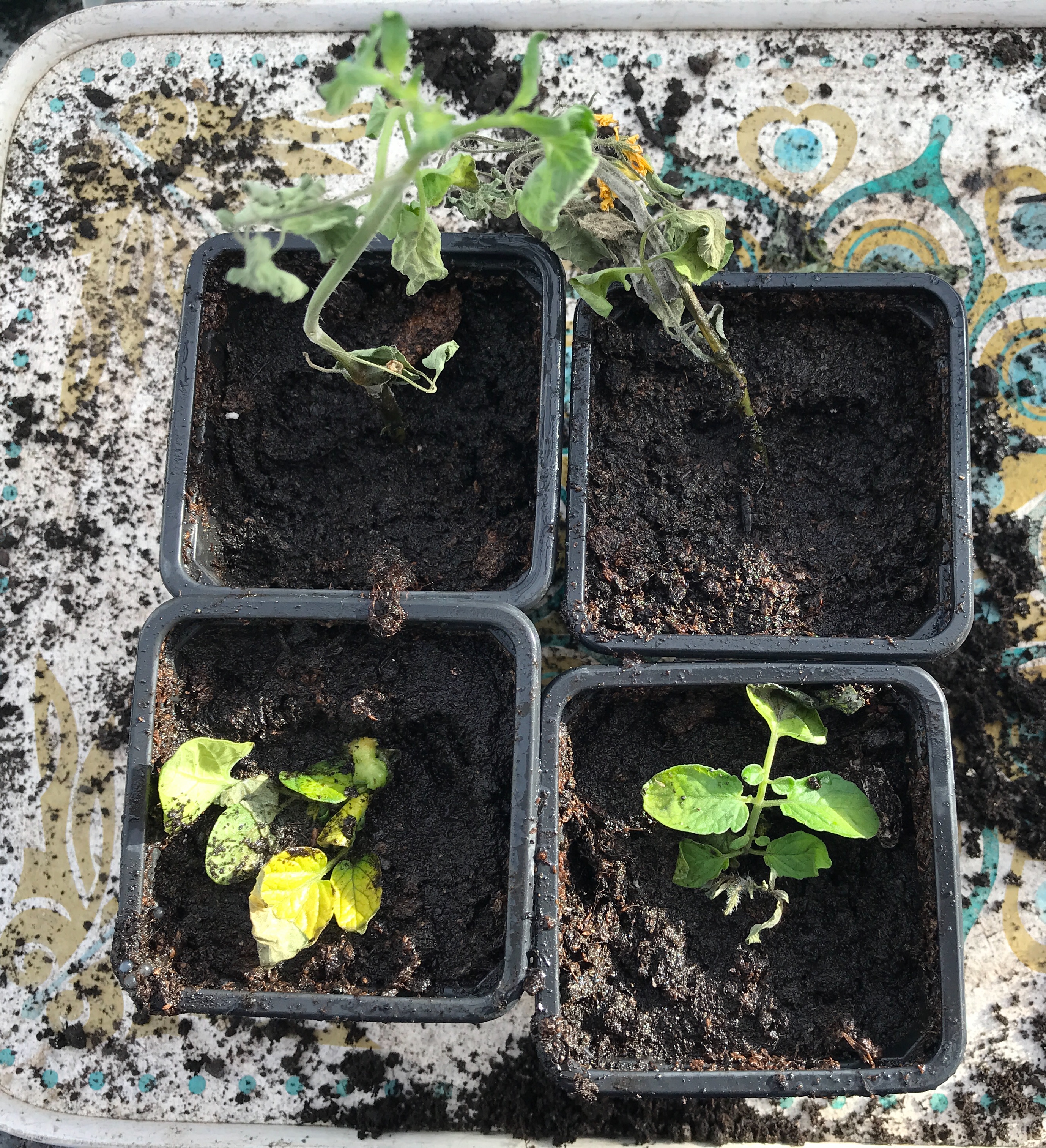 (The grubby tray is the one I use in my greenhouse for potting on, not for serving tea!)