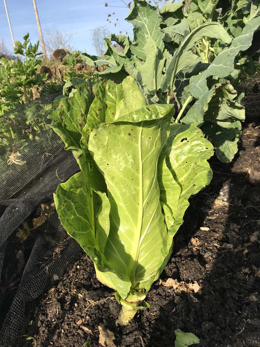 Marrows are growing well in some holes in black plastic and squash and lettuce in some huegels.