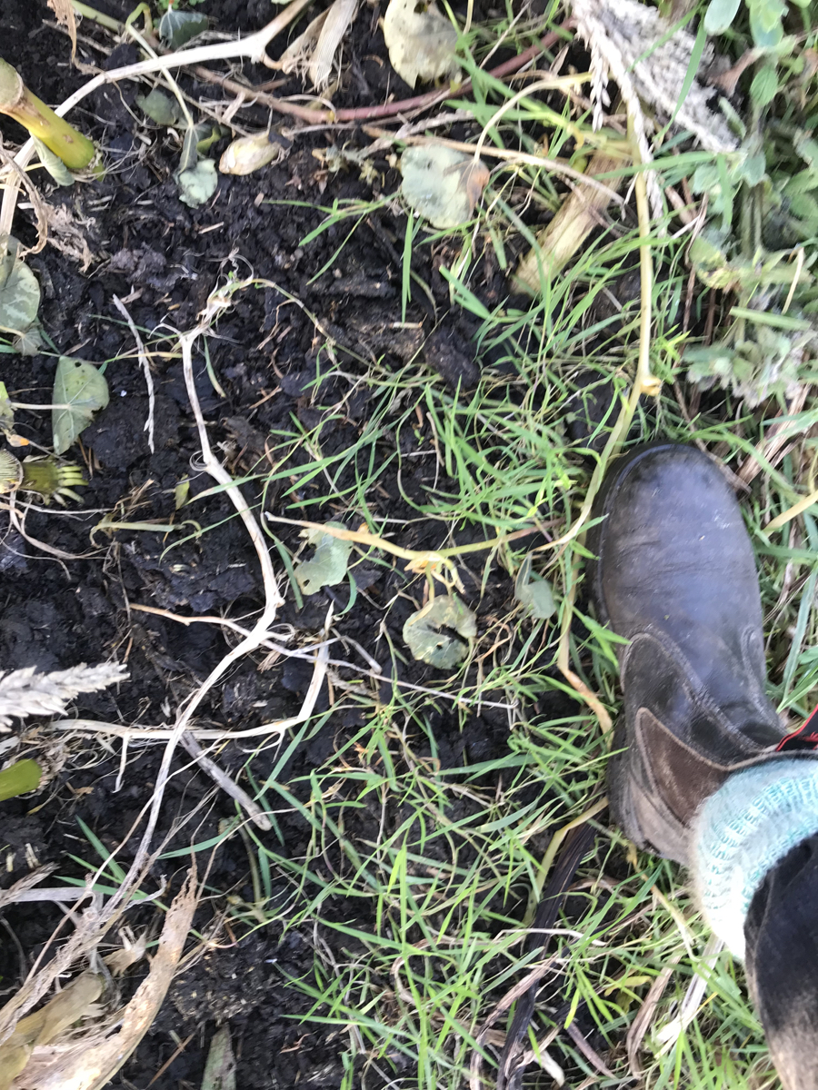No dig = fewer weeds! Turning the soil over exposes annual weed seeds which encourages germination (think of the flush of weed seedlings that usually appear a few weeks after a plot is dug over); in no dig, we are not doing this and so those weeds remain dormant.