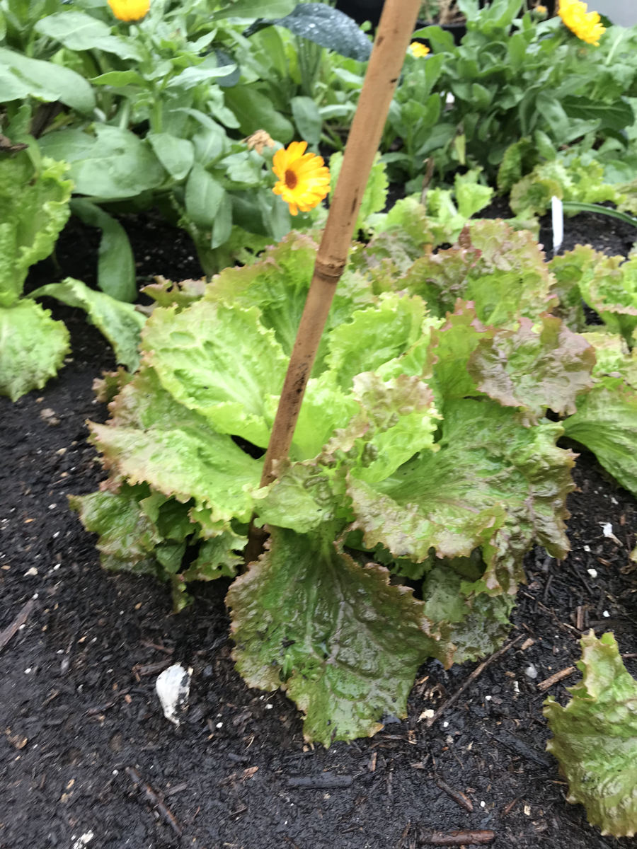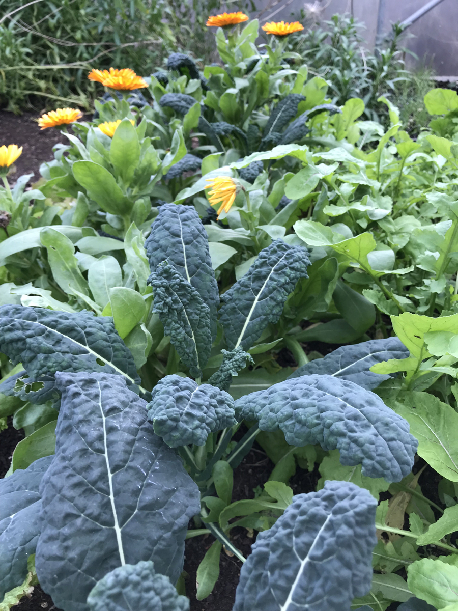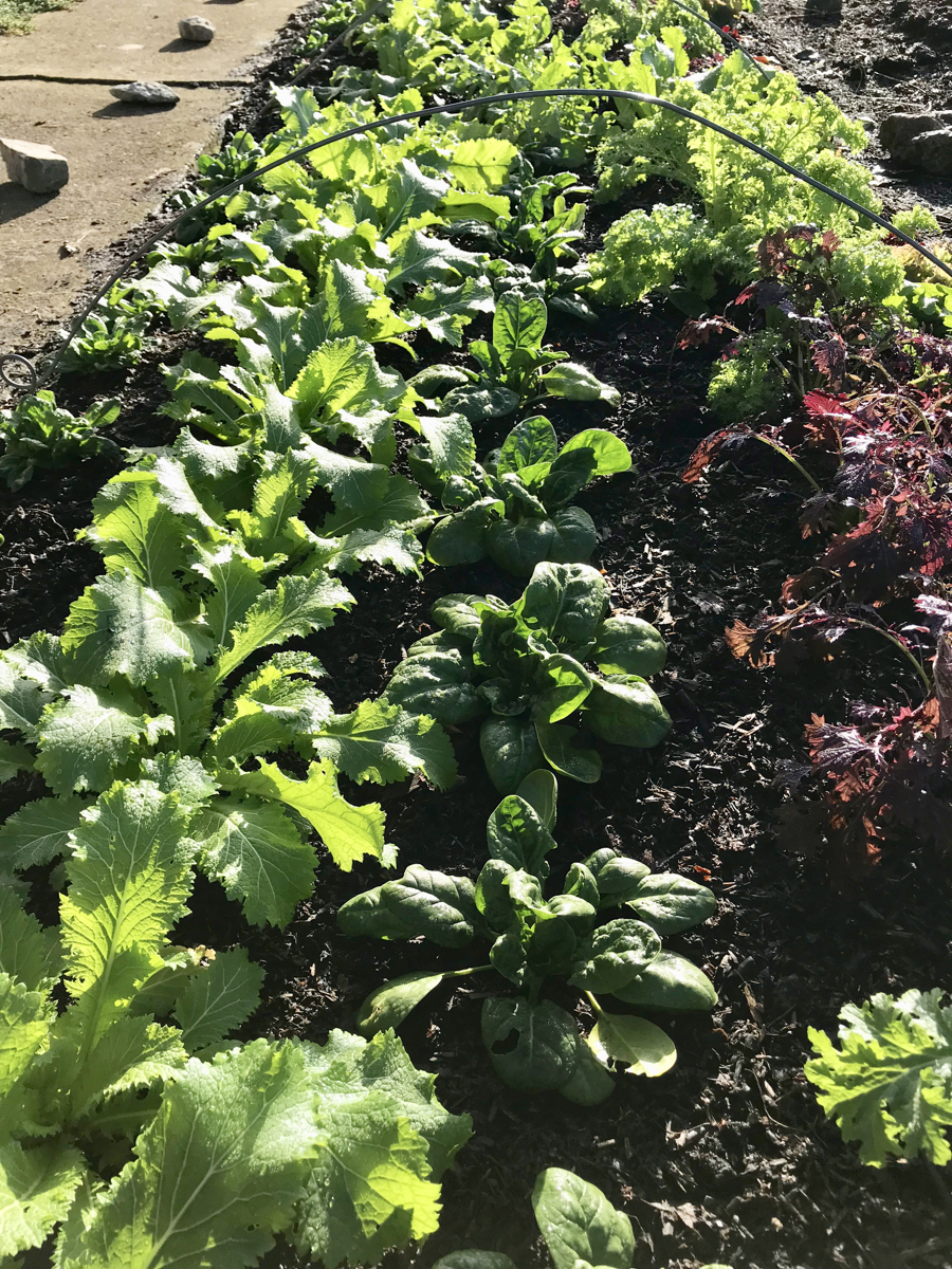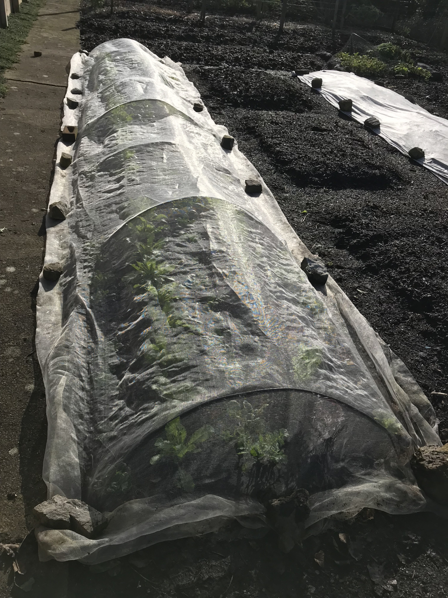 At Homeacres, we picked salad for the last delivery for two weeks. It is amazing how much we can get from outside. Here, across 3 strip trial beds we harvested £50 worth salad leaves from these small beds. They were planted as transplants late, Oct 26th and were not planned – the plants were spare and the space was free. After picking, they are covered with mesh over cloche hoops to keeps rabbits & bad weather off. The chervil is also protected from rabbits with enviromesh in another part of the garden.