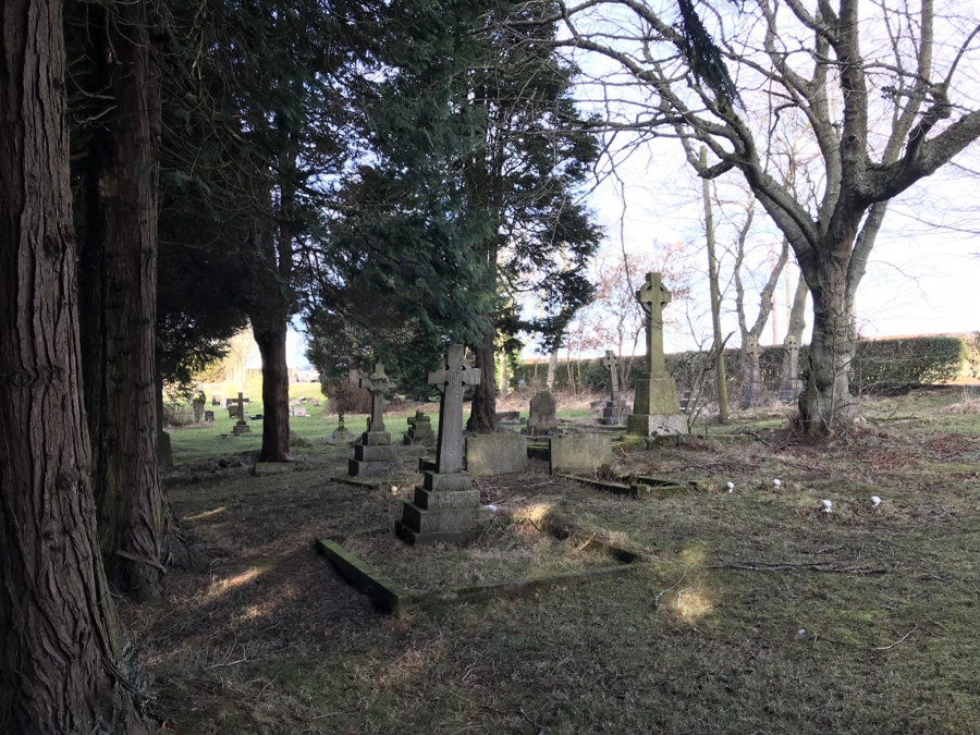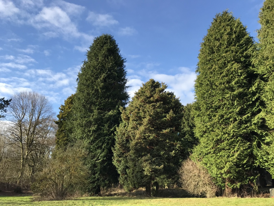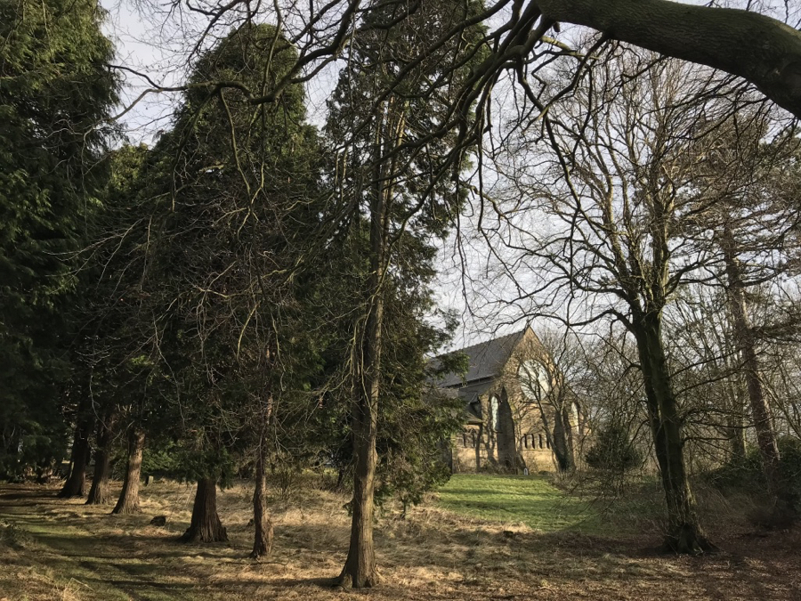 The church was locked so I couldn’t see inside, but Uncle Brendan sent me this information about it. I enjoyed the old graveyard, so mysterious and overgrown, the enormous trees perhaps protecting the present day congregation from the biting cold winds. Several of the trees must have grown up through ancient graves as crosses had been placed within them.