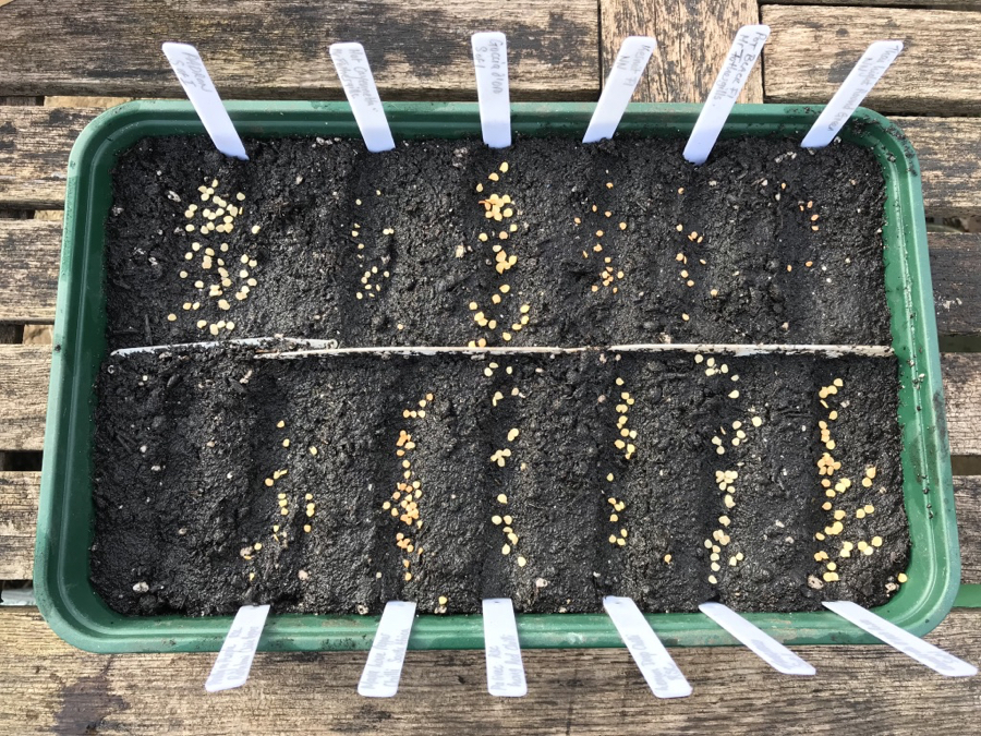 (In the right hand seed tray you can see the empty furrow I made for the seed packet that contained no seeds, discovered that one a bit too late!)