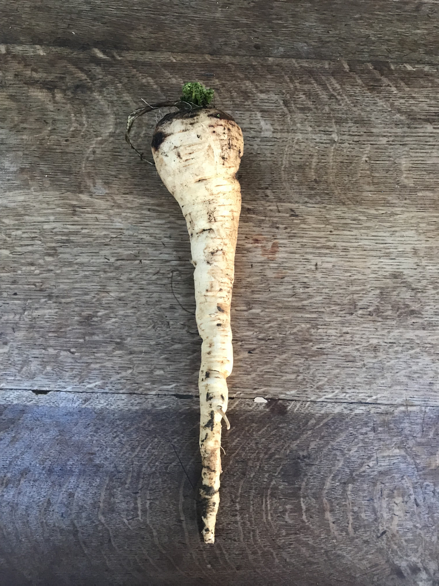 I harvested parsnips (this one was about 18 inches long) and decided to tidy up the area which had be smashed up by a January storm and then churned up by the guys replacing fence panels (see New Year Update). Sawing the two large lumps of concrete off old fence posts took ages and were very heavy: I could only roll them a short distance. They are next to a buddleia -not very attractive but I’ll make some kind of wildlife rockery out of them. There was a lot of broken up wood, so I spread some large sheets of cardboard on the earth (to stop weeds growing up) and stacked them as neatly as I could until I have the time to use them elsewhere in the garden – nothing will be wasted (as much as possible!) The rest of the ground looked very sorrowful and, as it had been understandably churned up by men erecting the fence, the disturbed earth will be covered with weeds as soon as the weather warms a little. Anticipating this, I decided that for now the best solution was to cover as much as I could with an old sheet of plastic (this is a groundsheet from an old tent) weighed down with stones, a metal dustbin and an old car wheel. One area left exposed is a small area of clover and wild strawberries that I always leave for wild life. And me, I eat the strawberries too.