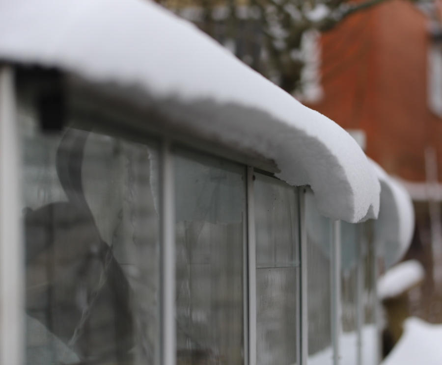 Fortunately the layer of snow started to slide off the polytunnel by itself and didn’t damage the structure.