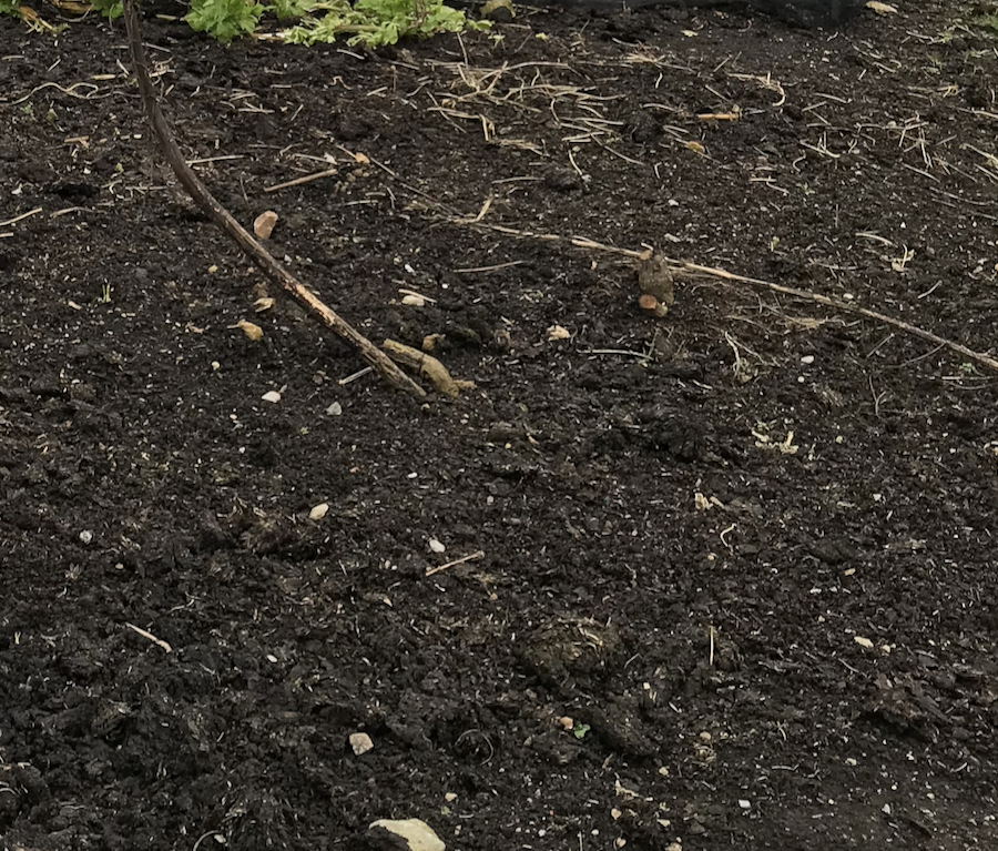 Everything is ready in the area behind the greenhouse for potting on – there isn’t much I can do with that pile of broken fence at the moment so I’m pretending it’s an artistic feature 🙂 Lifting a dalek composter revealed some fantastic compost which I’ve spread on several beds.