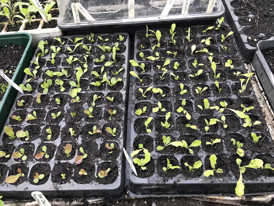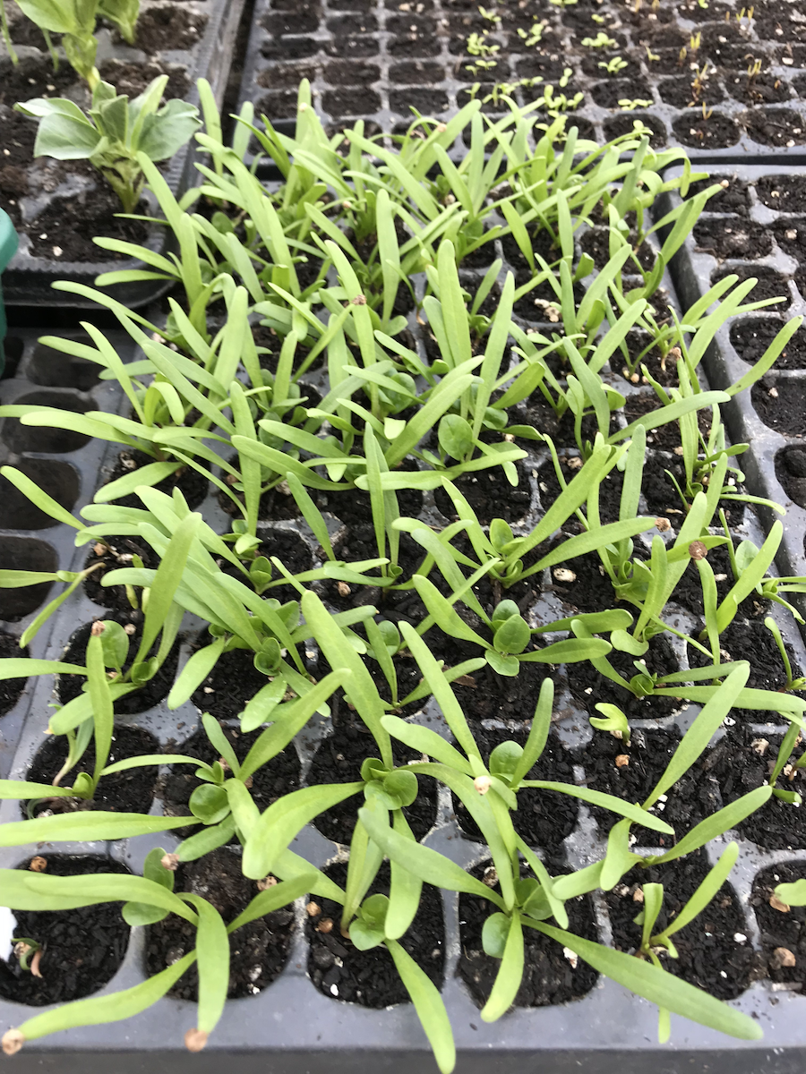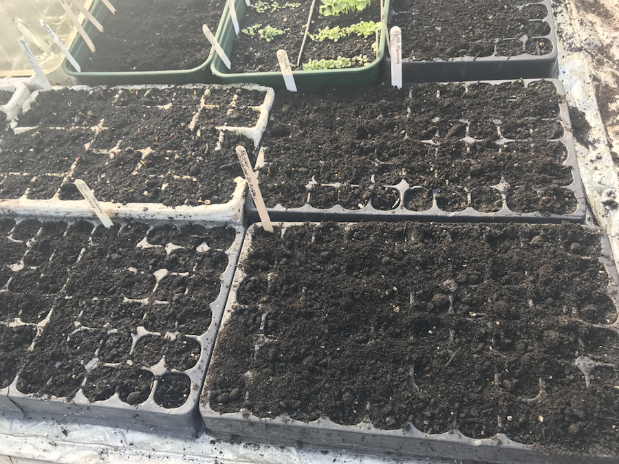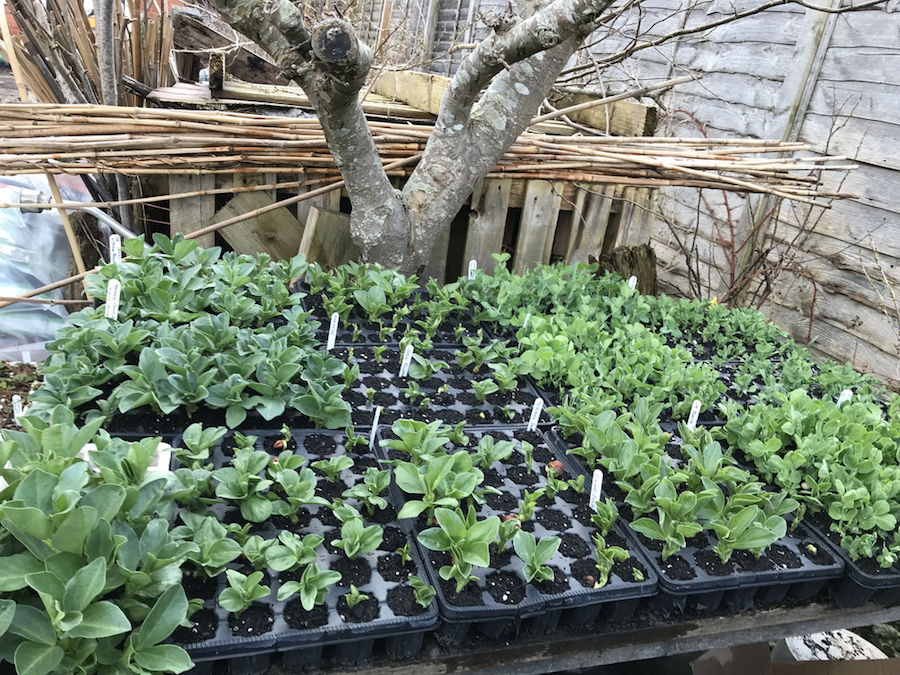 In the greenhouse, it’s a busy time sowing, pricking out and admiring my seedlings. Leggy seedlings are pricked out and buried up to their ‘necks’ – this makes lovely healthy transplants.