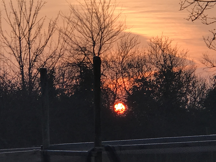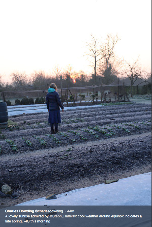 The spring equinox was bitterly cold with a gorgeous sunrise. We watched it rise at Homeacres. Charles’ garden photos are much admired on Instagram – here is how he gets many of those fabulous shots: on a ladder!