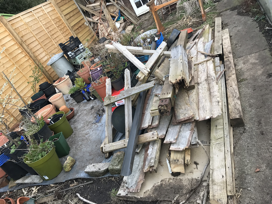 Clearing out the storage area at the side of my house revealed such treasures as half a sack of seaweed meal and two sacks of multipurpose compost! I’ve got a pile of things for the recycling centre, organised all of my pots and other equipment and moved the Hotbin closer to my house.