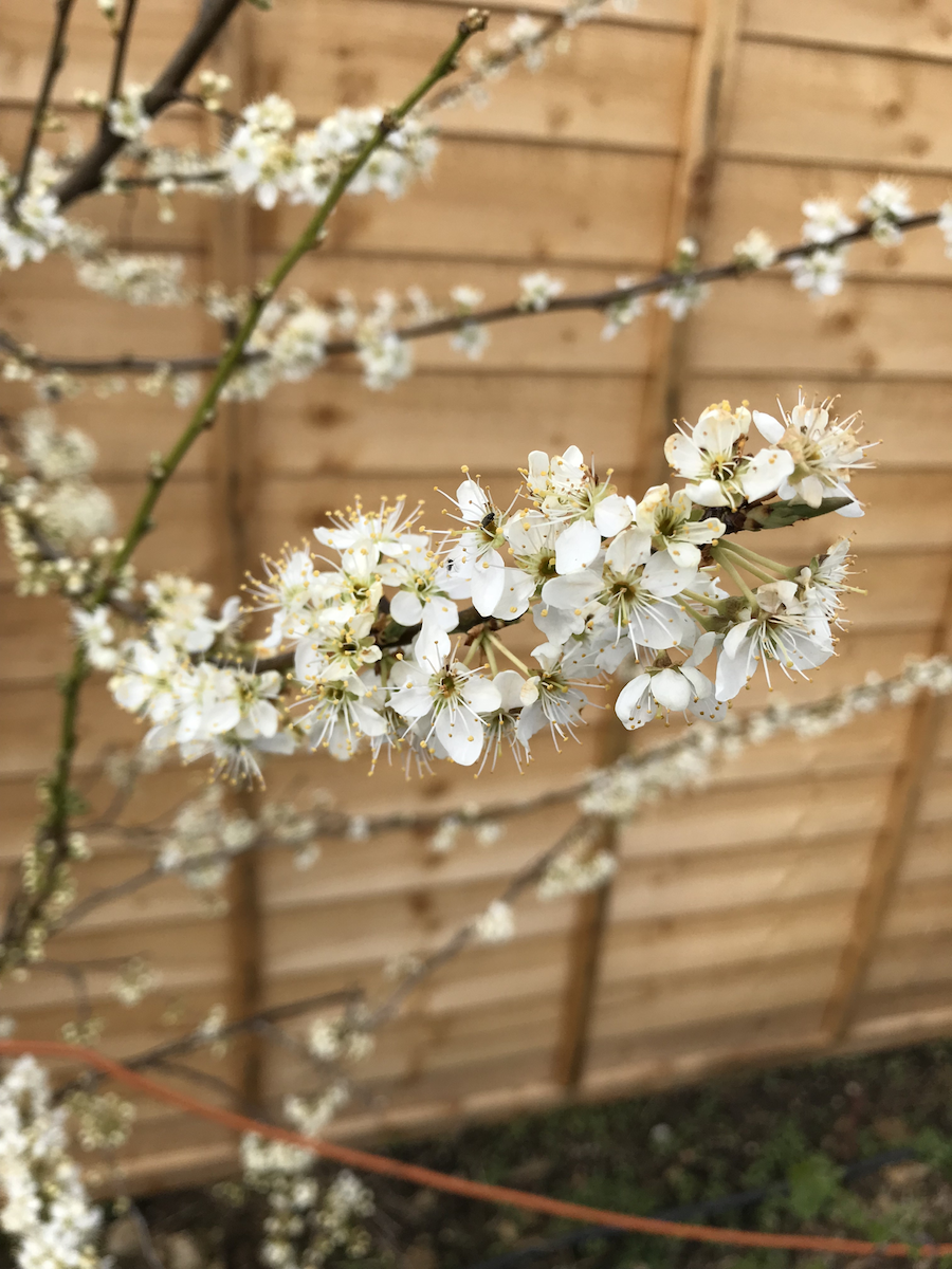 Outside, spring flowers cheer the heart and delight the bees. I was thrilled when, during my tidy up, I found the label for my early fruiting plum.