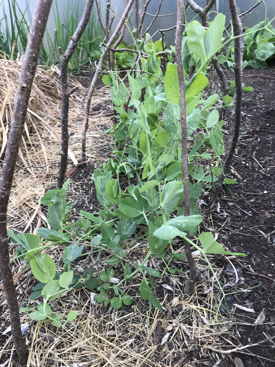 Despite the bonkers weather, in the polytunnel the Blue Butterfly Peas are growing beaufully. Now supported by pea sticks, I’m hopeful for a good crop of flowers and seeds to save for next year.