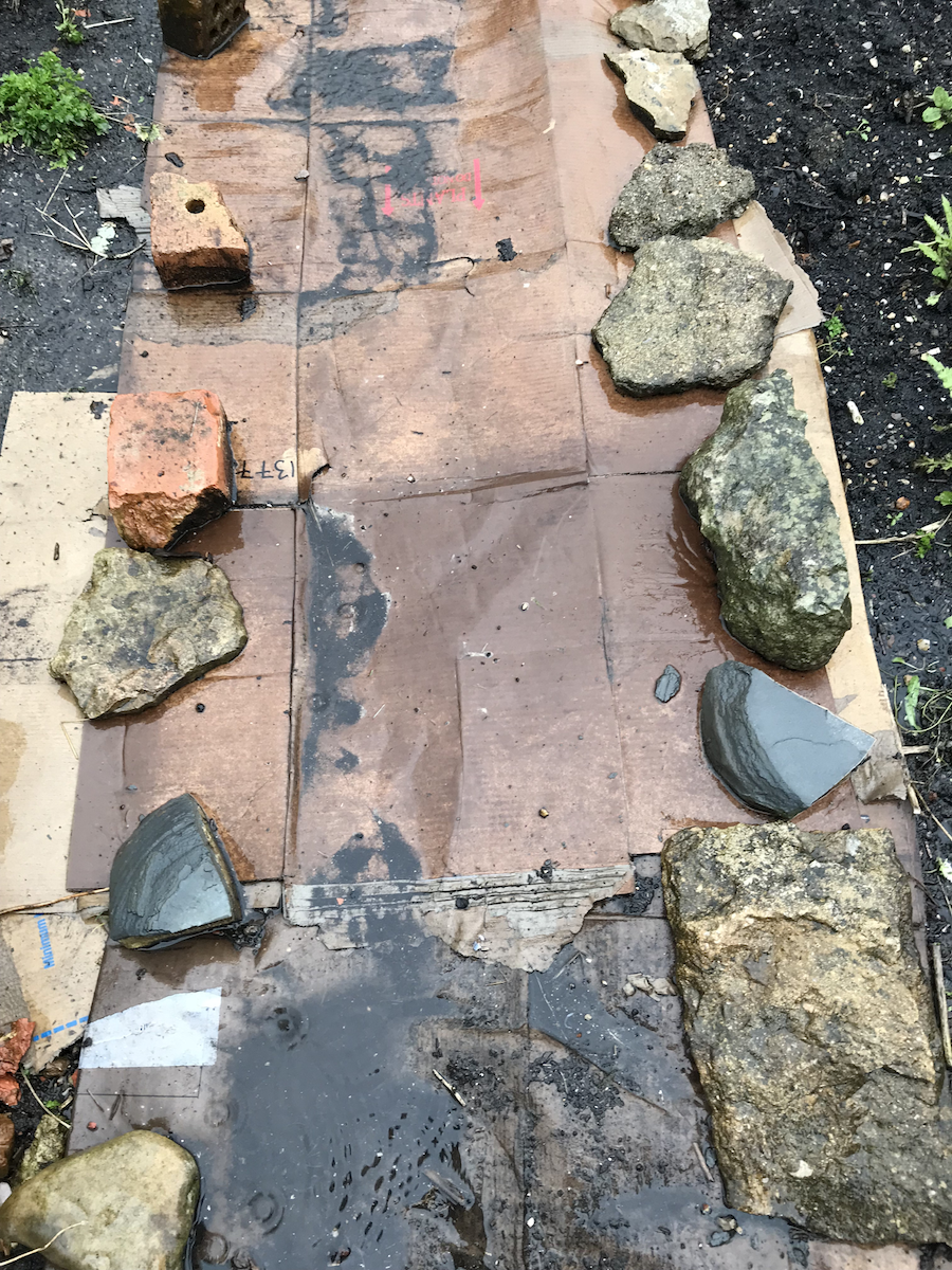 This spring I’m sorting the garden paths out. This is the route to the bottom of the garden, which runs alongside the washing line. It seems to want to be a lawn! So I’ve covered it with a layer of cardboard for now, to kill off the grass, whilst I concentrate on other jobs. I’ll be adding another layer of cardboard here tomorrow.