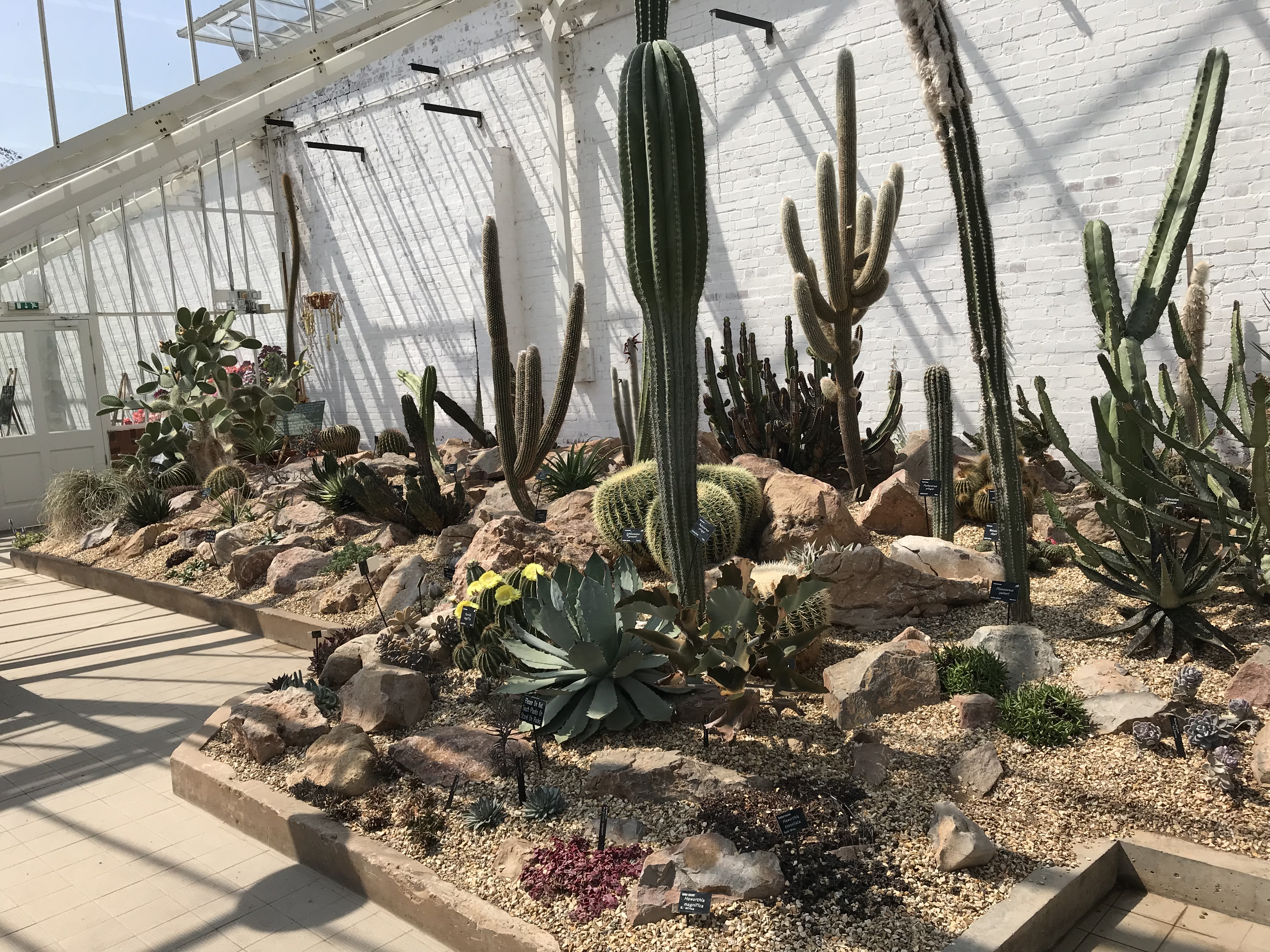 Inside the glasshouses, there is a tropical paradise, a cactus filled desert and a room full of pelargoniums.