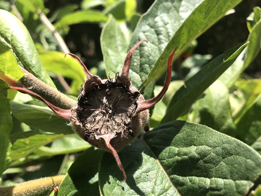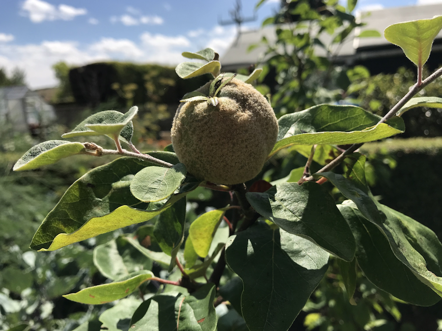 Spring’s gorgeous blossom suggested abundant harvests but all of my potted fruit trees have shed significant fruit. This quince is down to two fruit now and the medlar has dropped almost everything – this is a dry fruit that is going to drop off. It was growing so well but eventually the dry weather became too much for the little tree.