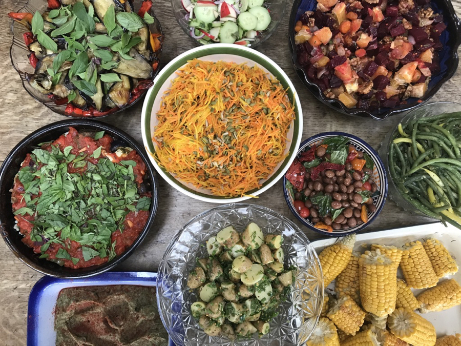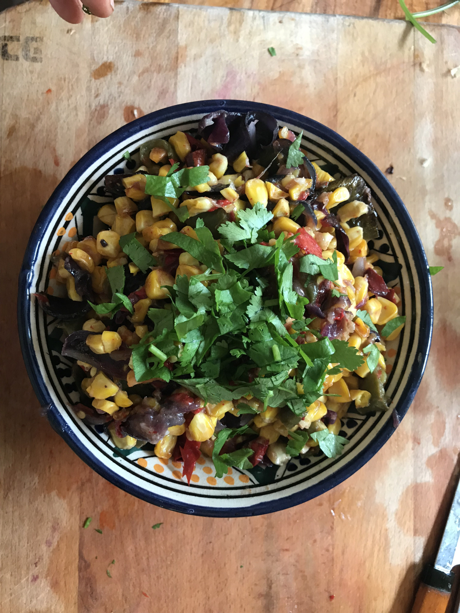 We eat most of the allotment sweetcorn simply boiled, grilled or roasted. For the courses, I’ve been making roast sweetcorn salads – here are two recipes.