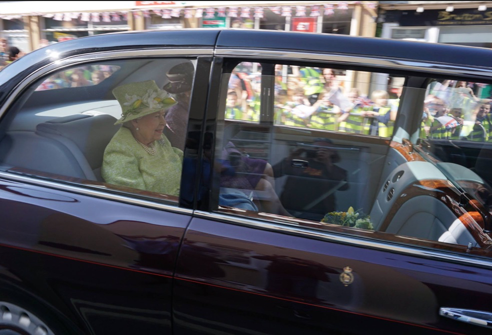 We have a one way system here in Bruton which meant that there were two flag waving opportunities for enthusiastic school children and local people, one before her lunch and one afterwards.